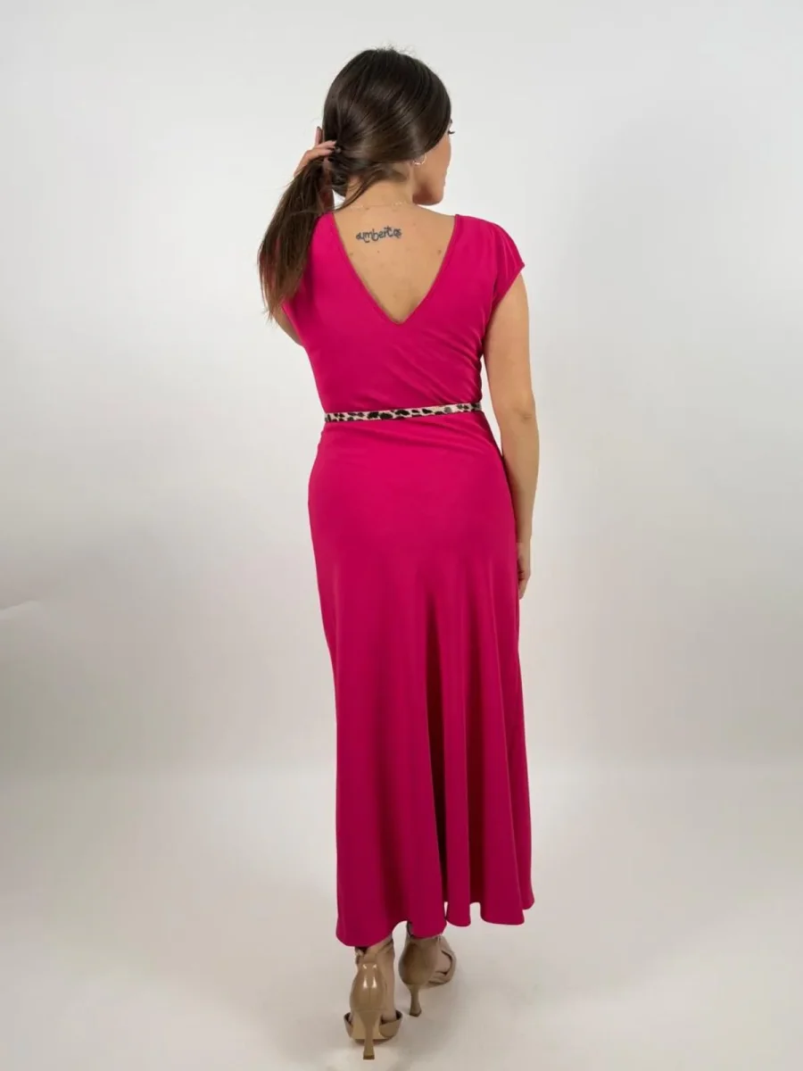 Abito lungo scollo barca cintura animalier