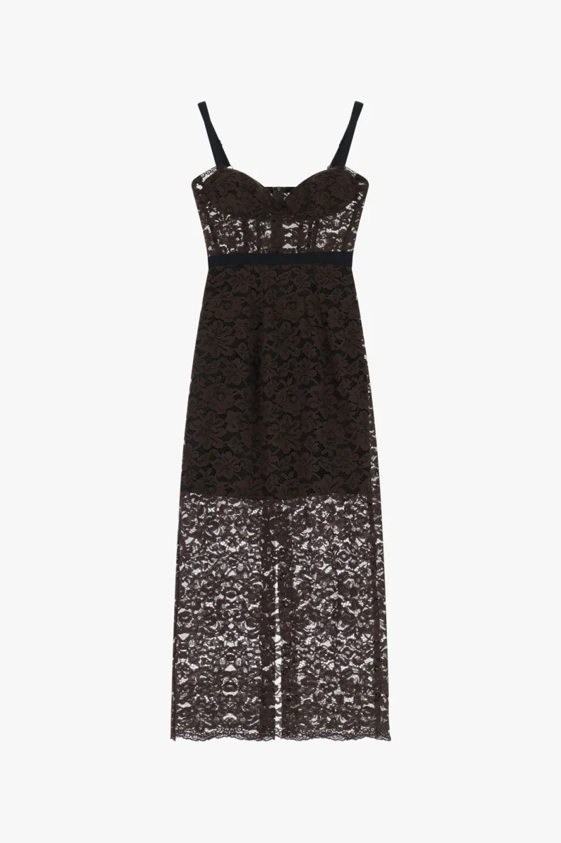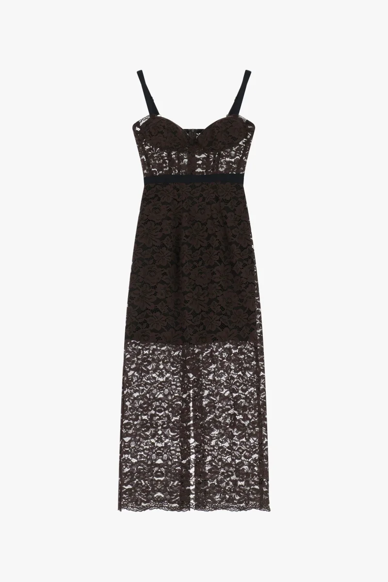 Abito midi in pizzo con spalline e scollo cuore