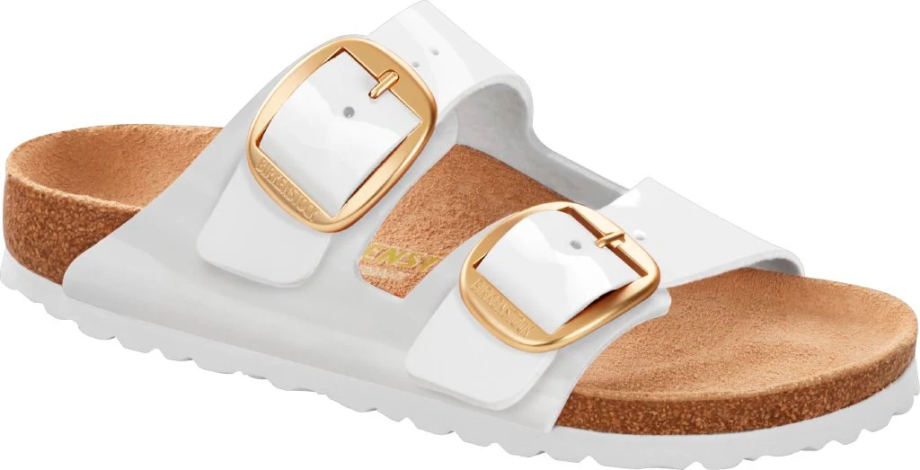 Il modello BIRKENSTOCK Arizona è un vero classico che entusiasma da decenni con il suo design senza tempo. La variante Big Buckle presenta una fibbia ad ardiglione grande ed elegante, un bel particolare che spicca su questi sandali. Grazie a questo rivestimento in vernice, il materiale sintetico Birko-Flor®, particolarmente dermoaffine e resistente, esalta i numerosi colori estivi e li rende particolarmente luminosi.