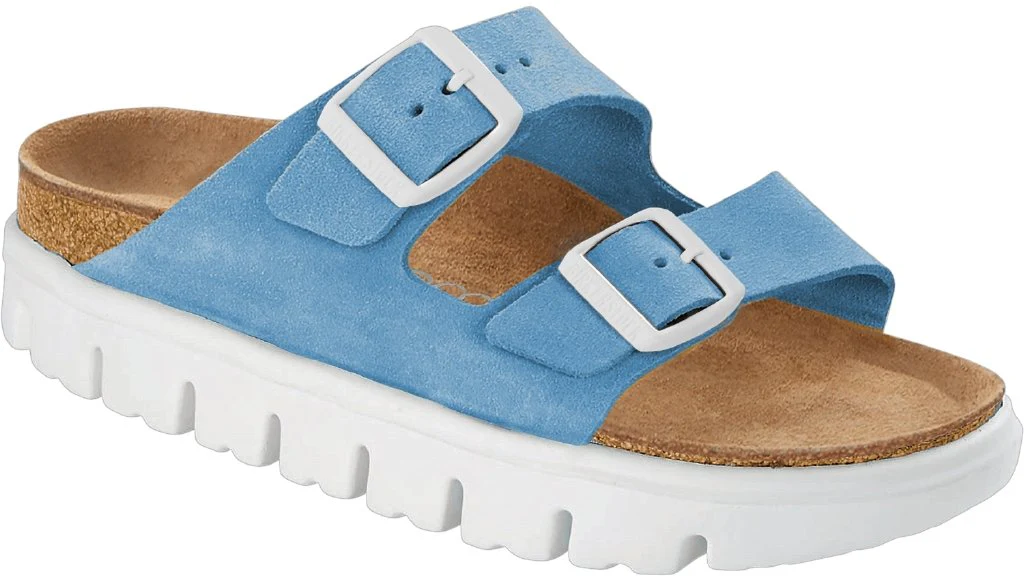 Il modello Arizona è un vero classico che entusiasma da decenni uomini e donne con il suo design senza tempo. Qui Papillio presenta il modello a due cinturini con un plateau stiloso e una suola con scanalature estremamente profonde. Grazie alla smussatura, la comodità di indosso è garantita. I dettagli in colore coordinato completano l’aspetto raffinato del sandalo. La tomaia è composta da pelle scamosciata particolarmente morbida, che aderisce al piede come una seconda pelle.