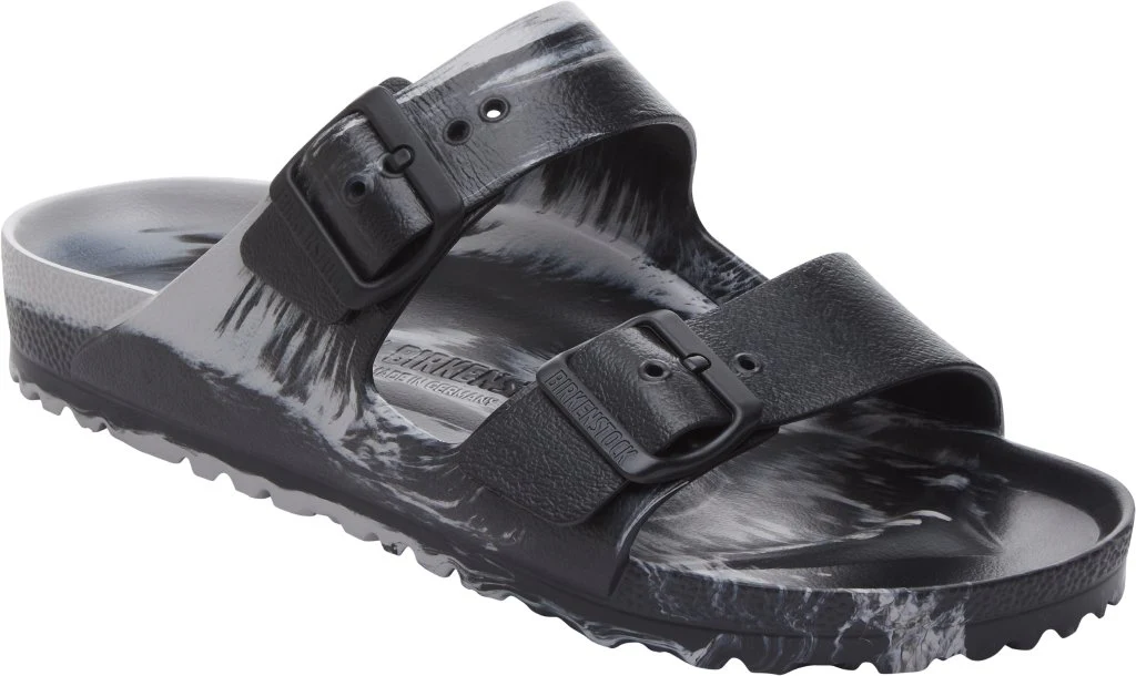 Il sandalo BIRKENSTOCK Arizona è un vero classico che conquista da decenni. Il sandalo dalla linea sobria con due cinturini rappresenta un design intramontabile e nel tempo è diventato una vera scarpa cult. Il materiale plastico EVA è di alta qualità, non ha odore o sostanze inquinanti e porta molte caratteristiche positive: è molto leggero, altamente elastico, articolo impermeabile, dermoaffine e offre la solita comodità di BIRKENSTOCK. Questo amatissimo modello è stato prodotto con un materiale rinnovato ed è ora disponibile in versione vegan. Il modello viene inoltre sottoposto a controlli effettuati da laboratori indipendenti per garantire che non vi siano parti di origine animale.
