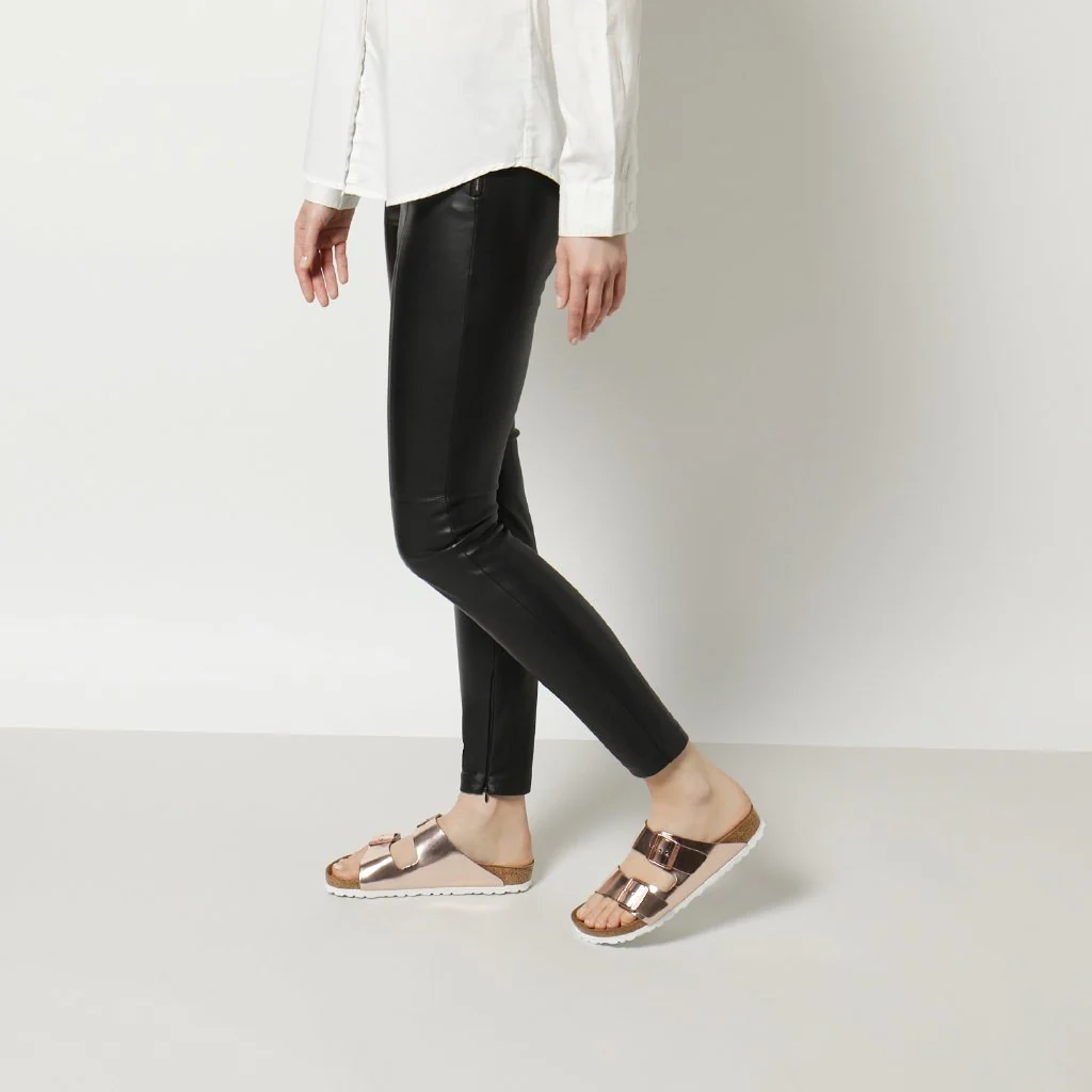 BIRKENSTOCK Arizona è un autentico classico che da decenni conquista uomini e donne con il suo design intramontabile. Questi sandali sono stati reinterpretati con un originale look metallizzato. Il rivestimento riflettente fa brillare questo modello classico di un nuovo splendore: così nessun outfit passerà inosservato. Grazie al cuscinetto aggiuntivo in schiuma, il morbido plantare garantisce ancora più comfort e si prende cura del piede durante tutta la giornata. La tomaia è realizzata in morbida pelle naturale di alta qualità.