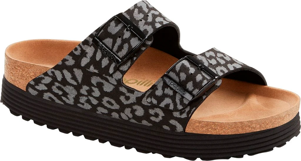 BIRKENSTOCK Arizona è un autentico classico che da decenni delizia sia gli uomini che le donne. Qui, Papillio presenta il sandalo a due cinghie con una trendy suola a piattaforma. Le inclinazioni nella parte anteriore e posteriore garantiscono il massimo comfort durante la camminata. Grazie alla sua suola moderna scanalata e alla stampa leopardata riflettente, questo modello è davvero accattivante ed è disponibile anche in una versione vegana. È completamente privo di prodotti animali, come confermato da laboratori di test indipendenti. La tomaia è realizzata in un mix di microfibra e materiale sintetico amico della pelle.
