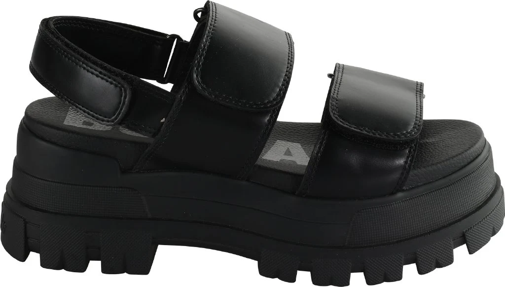 L’Aspha SND è un sandalo platform dallo stile urban e grintoso. Realizzato in pelle vegana nera, presenta ampie fasce con chiusura a strappo, che assicurano una calzata regolabile e confortevole.