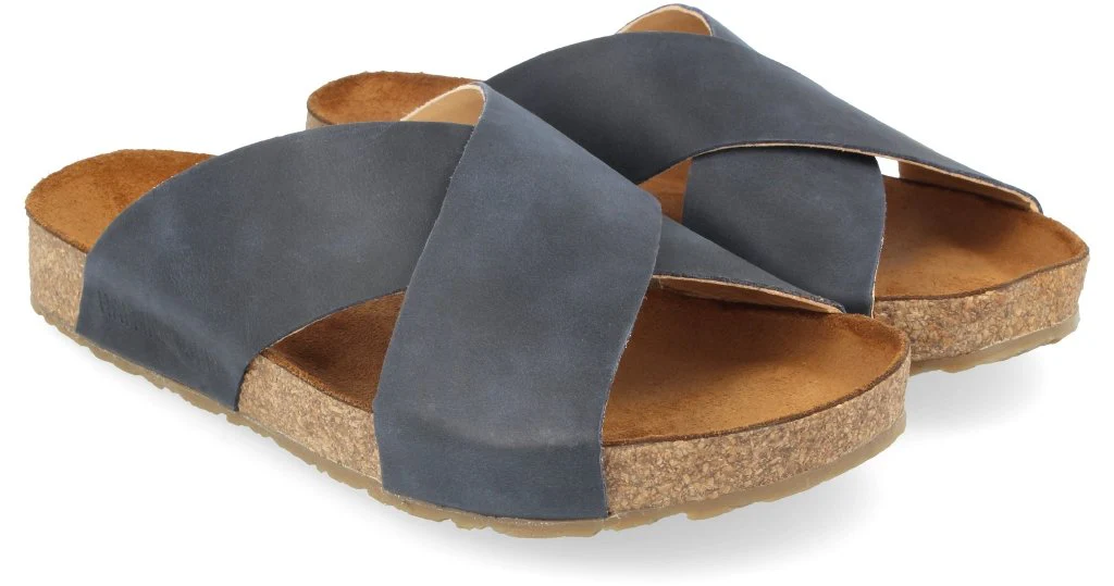 Ciabatta con tomaia in morbida pelle che avvolge il piede. Il plantare è morbido, ergonomico è rivestito in pelle scamosciata e composto da una miscela di sughero e lattice. La robusta suola in gomma termoplastica garantisce un appoggio sicuro. Ideale dentro e fuori casa anche in viaggio.