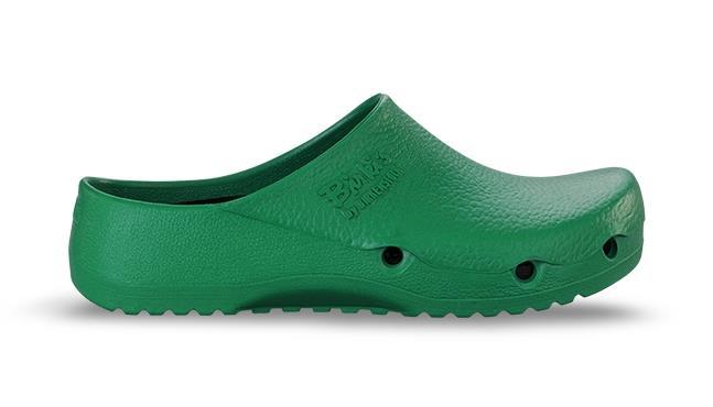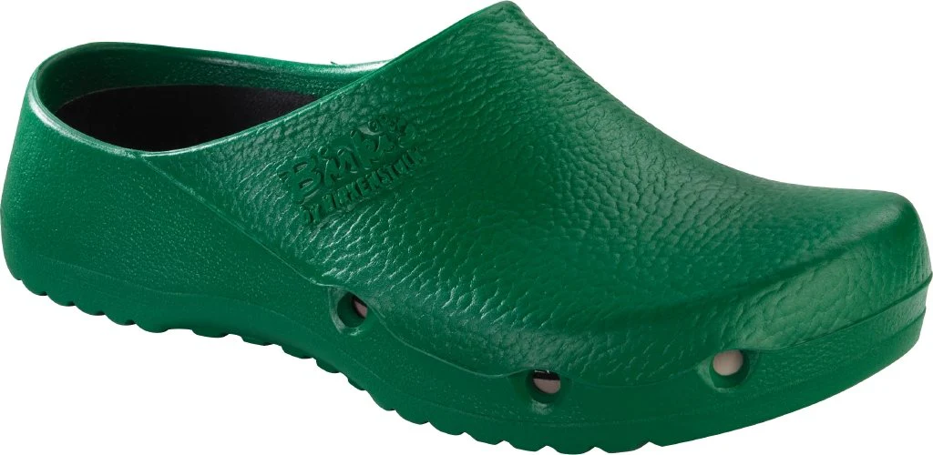 Sicurezza e comfort in un unico sandalo: il modello Birki Air Antistatic è una delle scarpe professionali più richieste in laboratorio, in sala operatoria e in altri ambienti medico-sanitari. Riconoscibile per la forma chiusa e allungata della tomaia e i bordi del sottopiede rialzati, questo sabot in poliuretano antistatico offre sicurezza e comfort di calzata ai massimi livelli. Le grandi aperture presenti nella zona anteriore della scarpa consentono il passaggio dell’aria, assicurando così un microclima perfetto per i piedi. Il plantare Original PU di BIRKENSTOCK sostiene la naturale anatomia del piede e in questo modo previene da eventuali lesioni alla postura e alle articolazioni, nonché dall’affaticamento muscolare. Se necessario, è possibile sostituirlo. Il plantare e l’intero sabot sono testati secondo i requisiti della norma EN ISO 20347:2012. Il sabot è resistente a olio e grasso. Può essere lavato e disinfettato fino a una temperatura di 80 °C, mentre il plantare intercambiabile è lavabile a una temperatura di 60 °C.