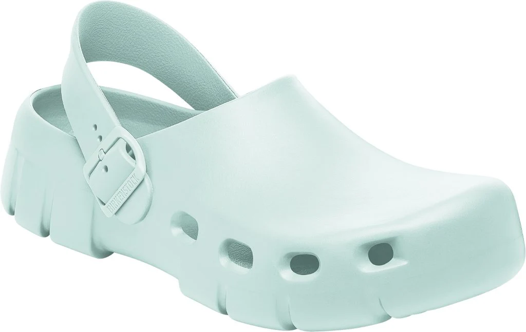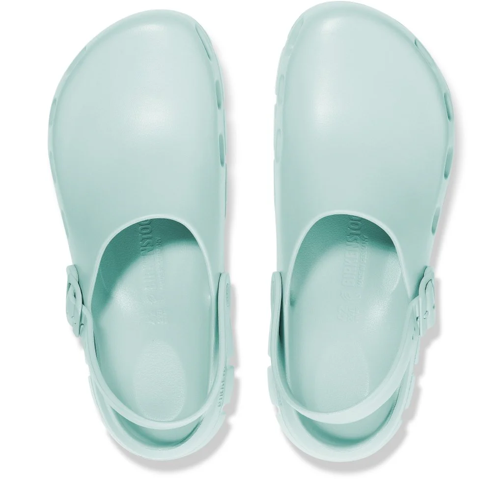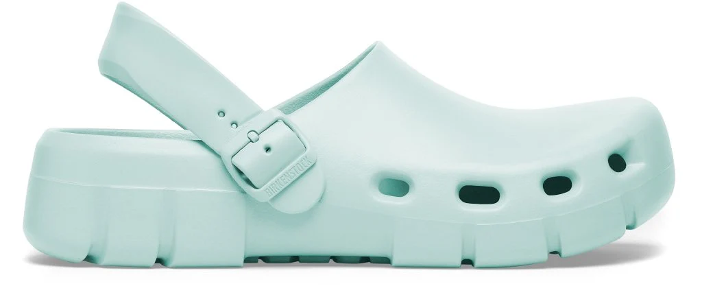 BIRKENSTOCK Birki Flow può essere indossato con il cinturino posizionato dietro al tallone o come un sabot aperto. Questo modello è in plastica EVA particolarmente leggera e molto flessibile. La pregiata plastica EVA, inodore e priva di sostanze nocive, riunisce in sé molte caratteristiche positive: essa è molto leggera, estremamente elastica, ammortizzante, resistente all’acqua e dermoaffine.
