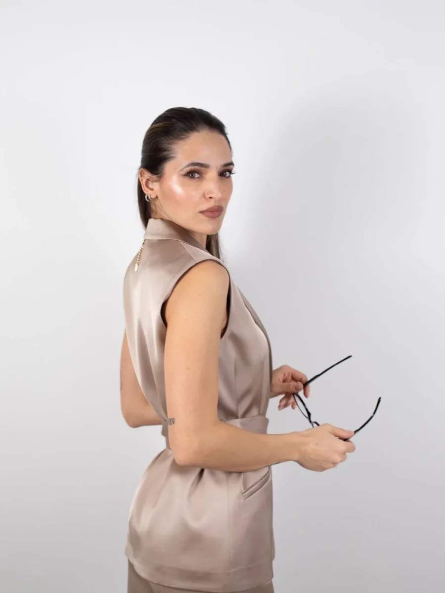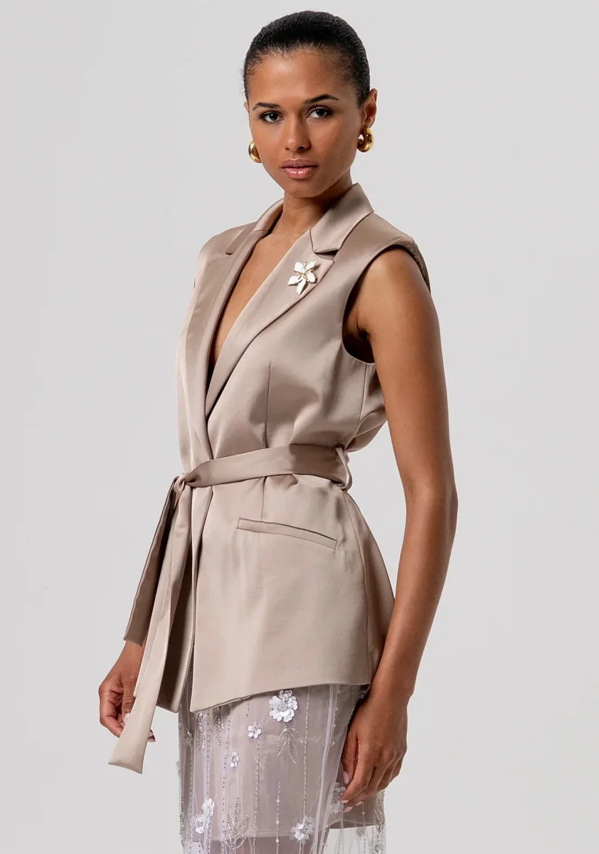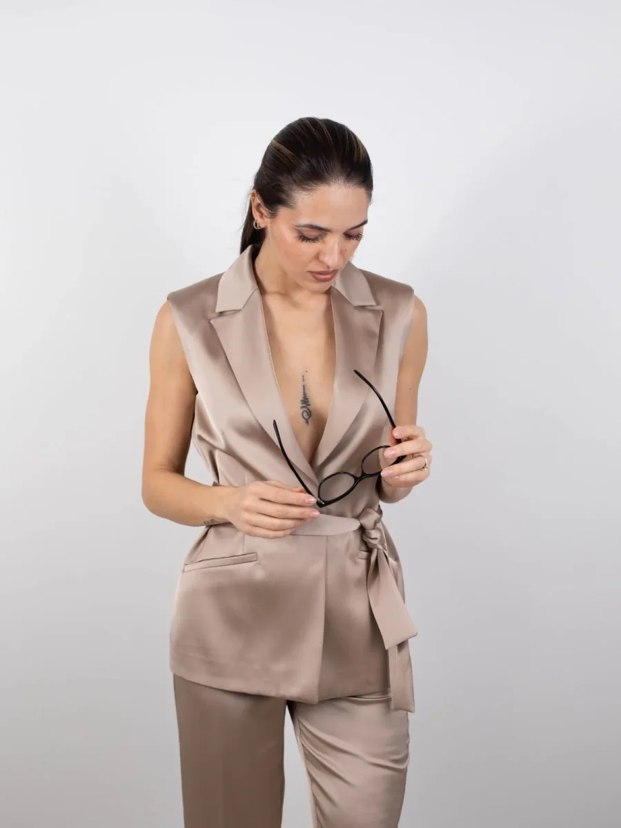 Blazer senza maniche in raso