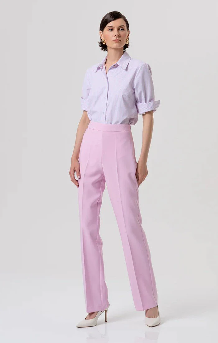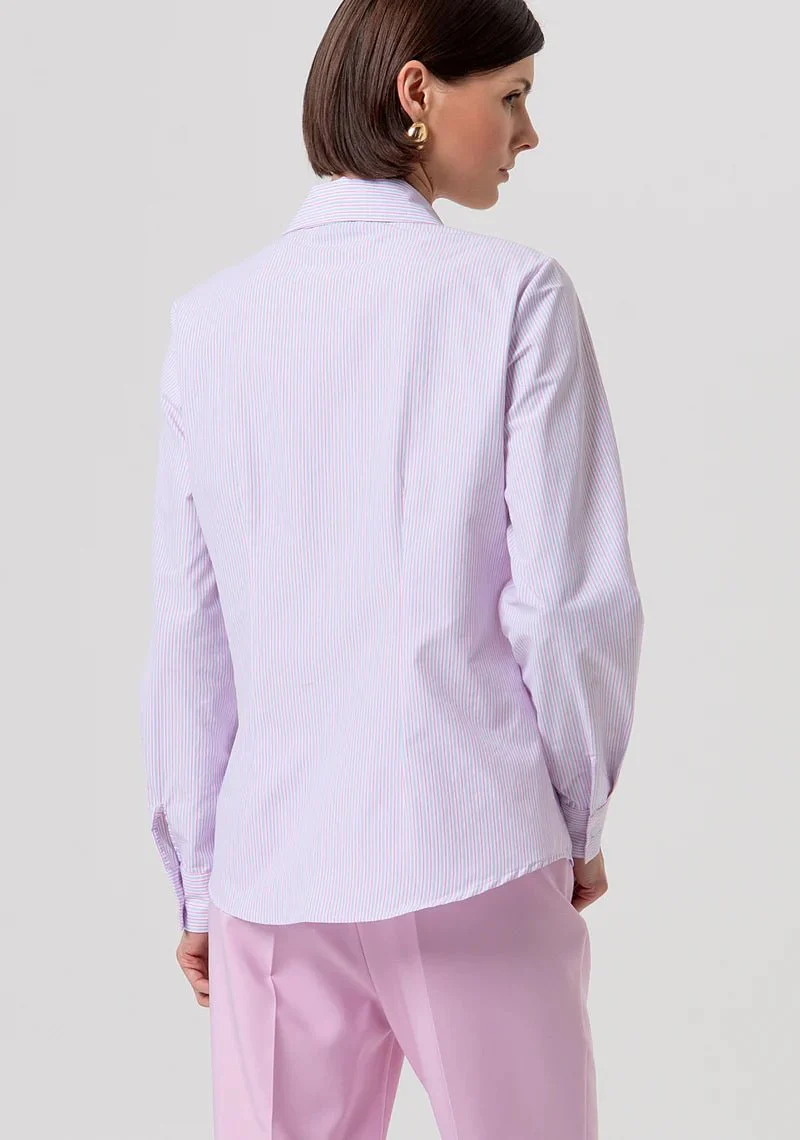 Camicia regular a righe, colletto classico, apertura centrale con bottoni, e con maniche lunghe.