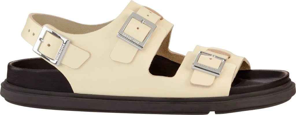 BIRKENSTOCK Cannes è uno stile purista e moderno. Ti convincerà con il suo delicato look pregiato e la sua eleganza femminile. Il cinturino convesso in zamak brillante ti garantisce un vero tocco di stile. Il plantare exquisit è completamente rivestito in pelle piumato e offre una straordinaria comodità. La suola esterna sospesa sulla parte anteriore sostiene il piede nel suo movimento di rollio e offre la massima flessibilità. La tomaia è in pregiata e morbida pelle naturale.