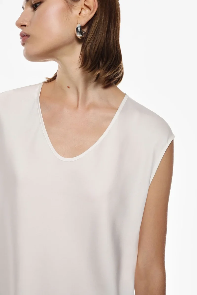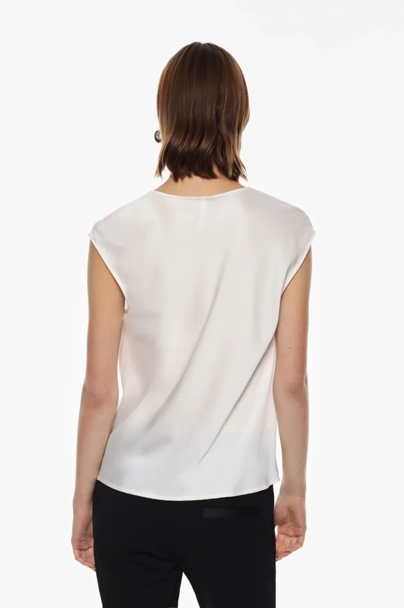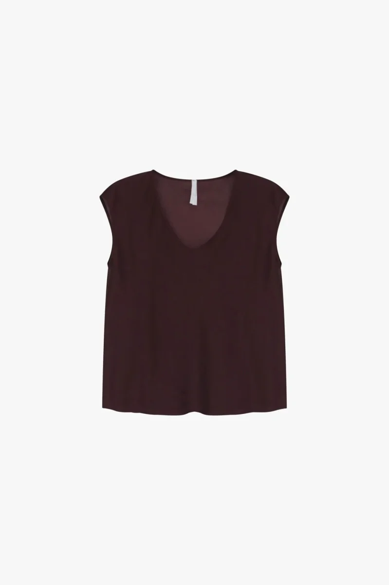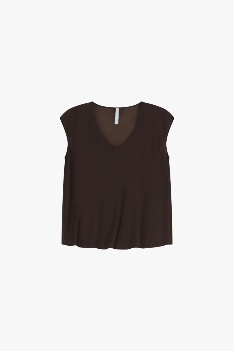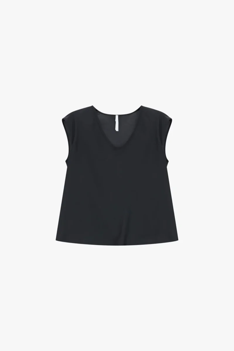 Top leggero dal taglio svasato e fit morbido, con scollo a v e profilo pulito. Un capo essenziale e versatile che valorizza la semplicità delle linee contemporanee, perfetto per comporre look stratificati e personalizzati. Disponibile in vari toni per interpretare ogni stile con sobrietà e carattere individuale.