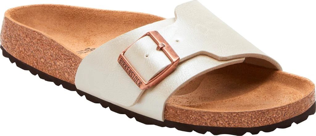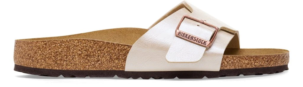 Il design di BIRKENSTOCK Catalina con il suo cinturino e la fibbia in metallo è ispirato al grande classico Madrid. Il cinturino un po’ più largo conferisce al sandalo un look moderno ed elegante. Qui il sandalo si presenta in una finitura satinata. La tomaia è in Birko-Flor®, un materiale sintetico resistente all’usura e delicato per la pelle.