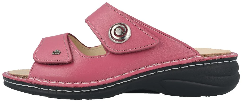 Ciabatta da donna della linea Classic con una cambratura da 20 mm. Due cinturini regolabili con velcro assicurano un adattamento al piede rapido e perfetto per garantire una tenuta sicura. L’ampia base d’appoggio favorisce comfort e stabilità durante la camminata. La punta larga regala ampio spazio alle dita, ideale anche per piedi robusti. La suola in poliuretano ammortizza l’impatto con il suolo a ogni passo, alleviando efficacemente l’affaticamento della colonna vertebrale.