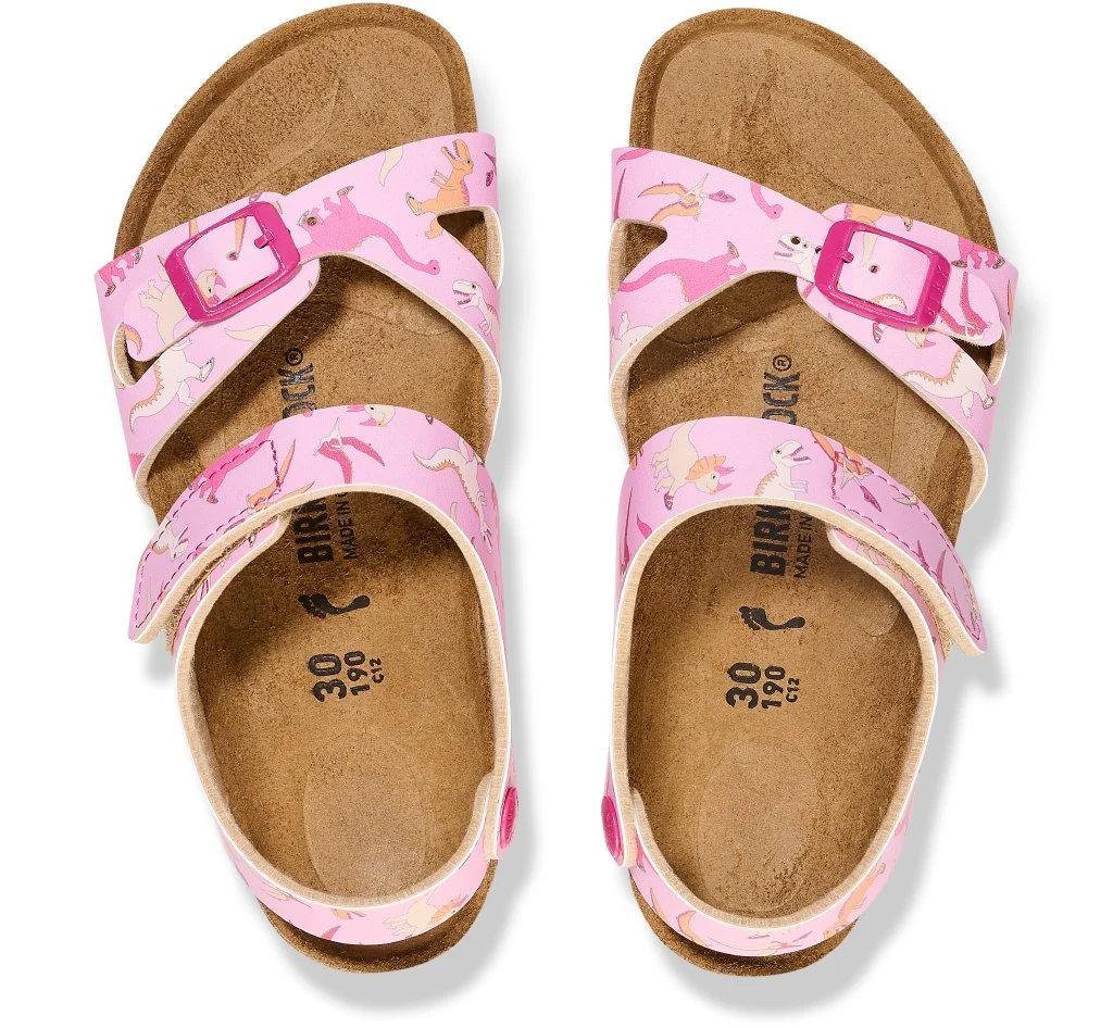 BIRKENSTOCK Colorado è una variazione del classico Rio. La fibbia sul cinturino per il tallone è stata sostituita da una chiusura in velcro che permette di indossare e togliersi la scarpa in un lampo. Perfetto per i piedini impazienti dei bimbi! Questi sandali si mostrano qui in una versione che farà impazzire i bambini. La vivace stampa con i dinosauri accompagnerà i bambini durante il giorno. I dettagli in colore coordinato completano l’aspetto raffinato del sandalo. La tomaia è in Birko-Flor®, un materiale sintetico resistente all’usura e delicato per la pelle.