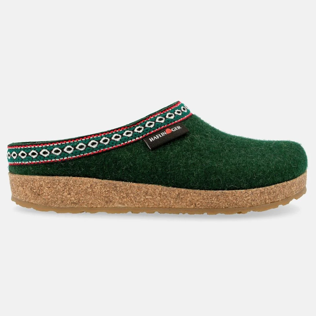 Questo modello è caratterizzato dalla tomaia in feltro di pura lana vergine. Il piede poggia su un plantare anatomico in sughero e lattice, ricoperto da feltro di lana. Sughero e feltro creano un microclima ideale e fanno sì che i piedi rimangano sempre asciutti. La suola di termorubber antiscivolo garantisce un appoggio sicuro.
