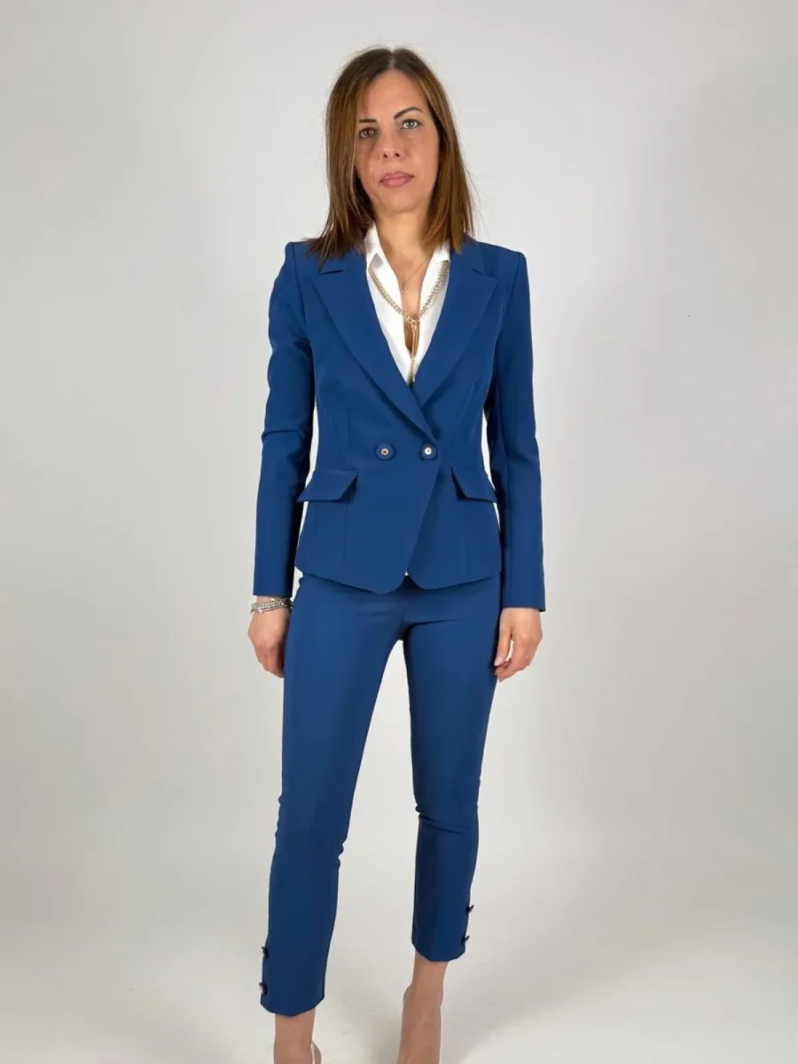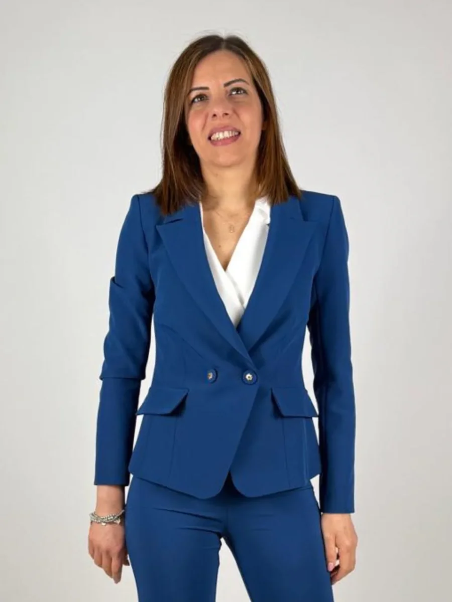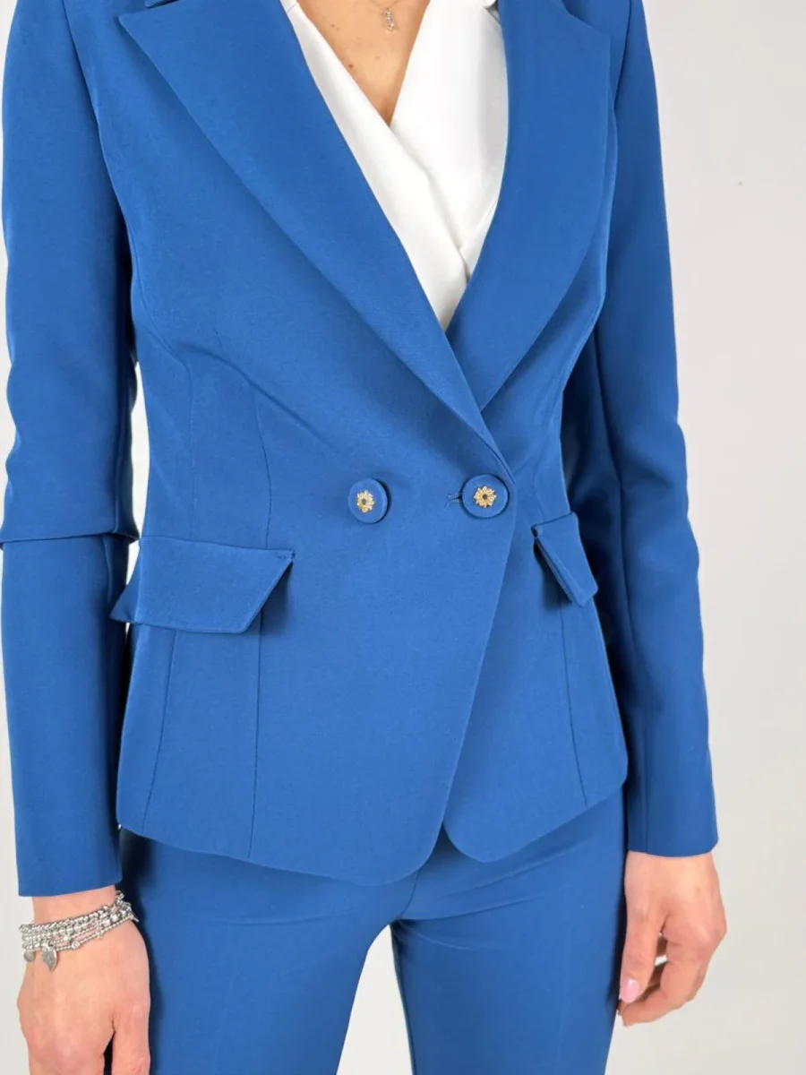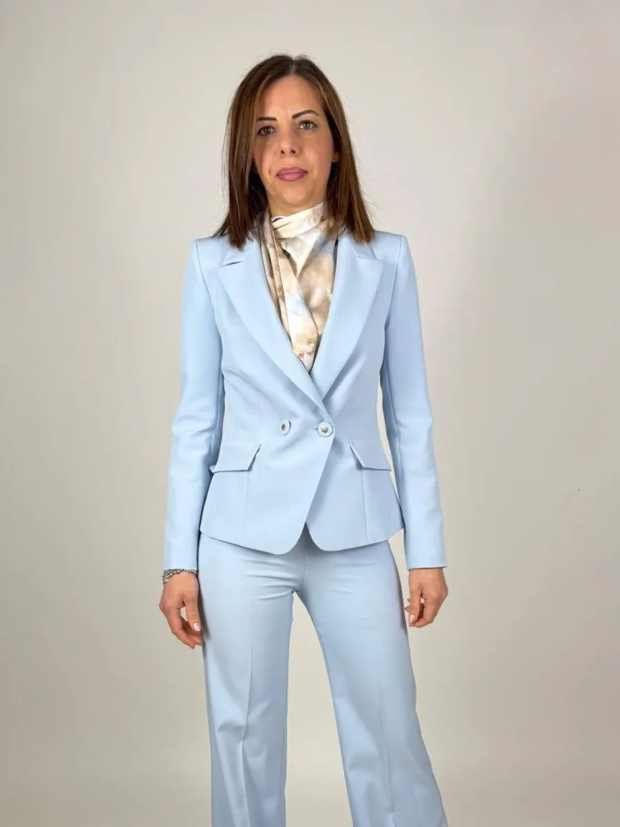 Perfetta da indossare con i suoi pantaloni coordinati per creare un completo dall’allure contemporanea, ideale per un appuntamento di lavoro, un evento formale o una laurea. Provala anche spezzata, su un jeans o un abito tubino, per un’immagine curata che non rinuncia alla femminilità.