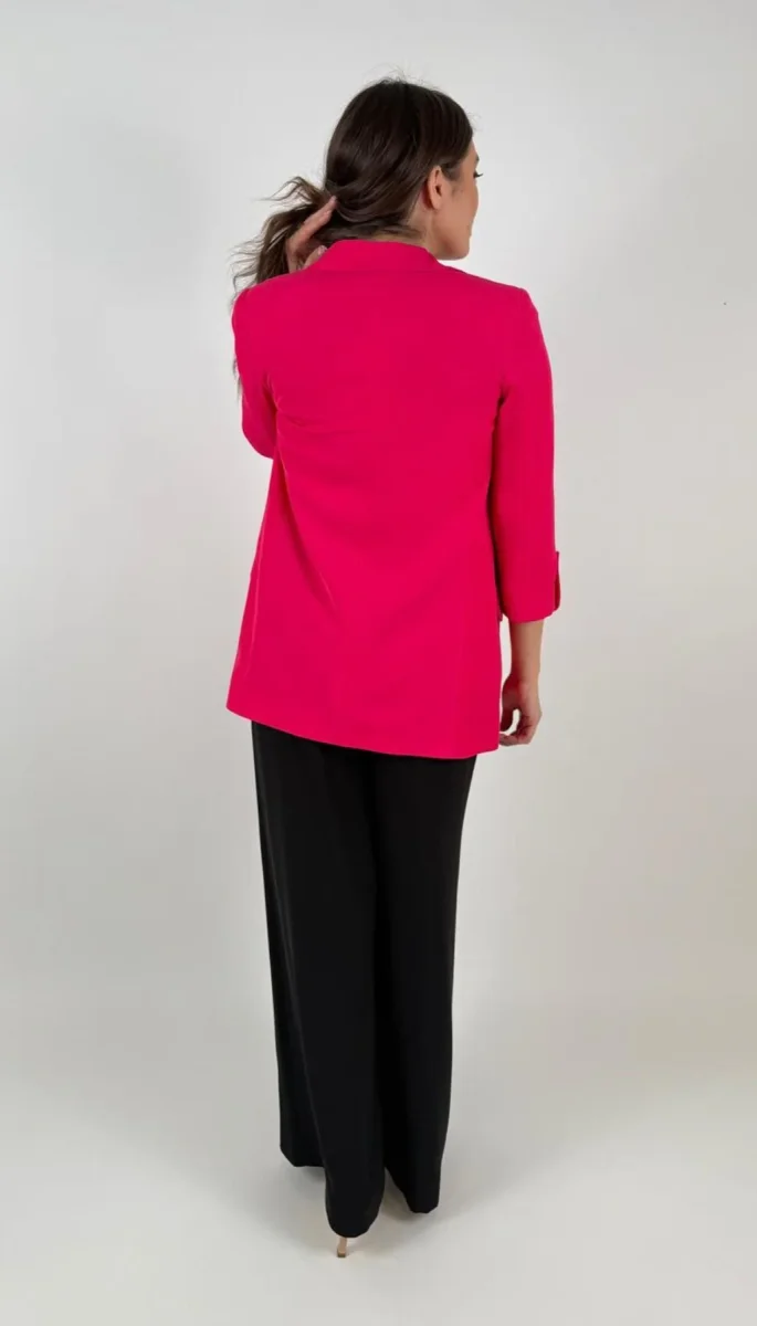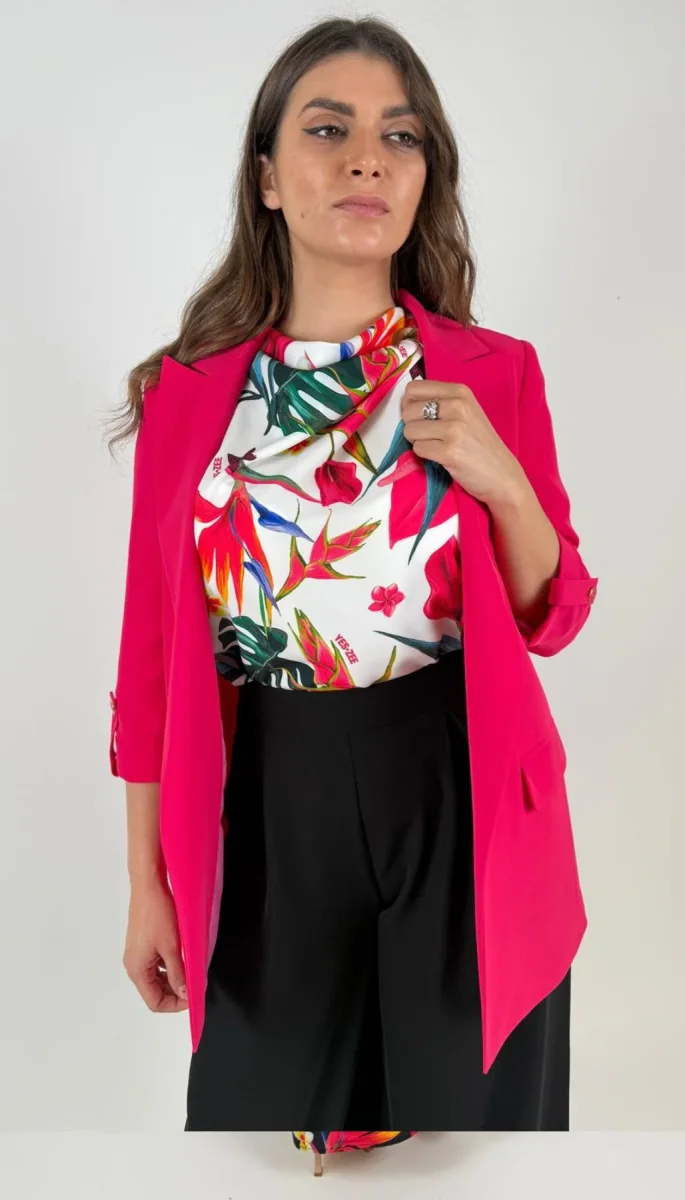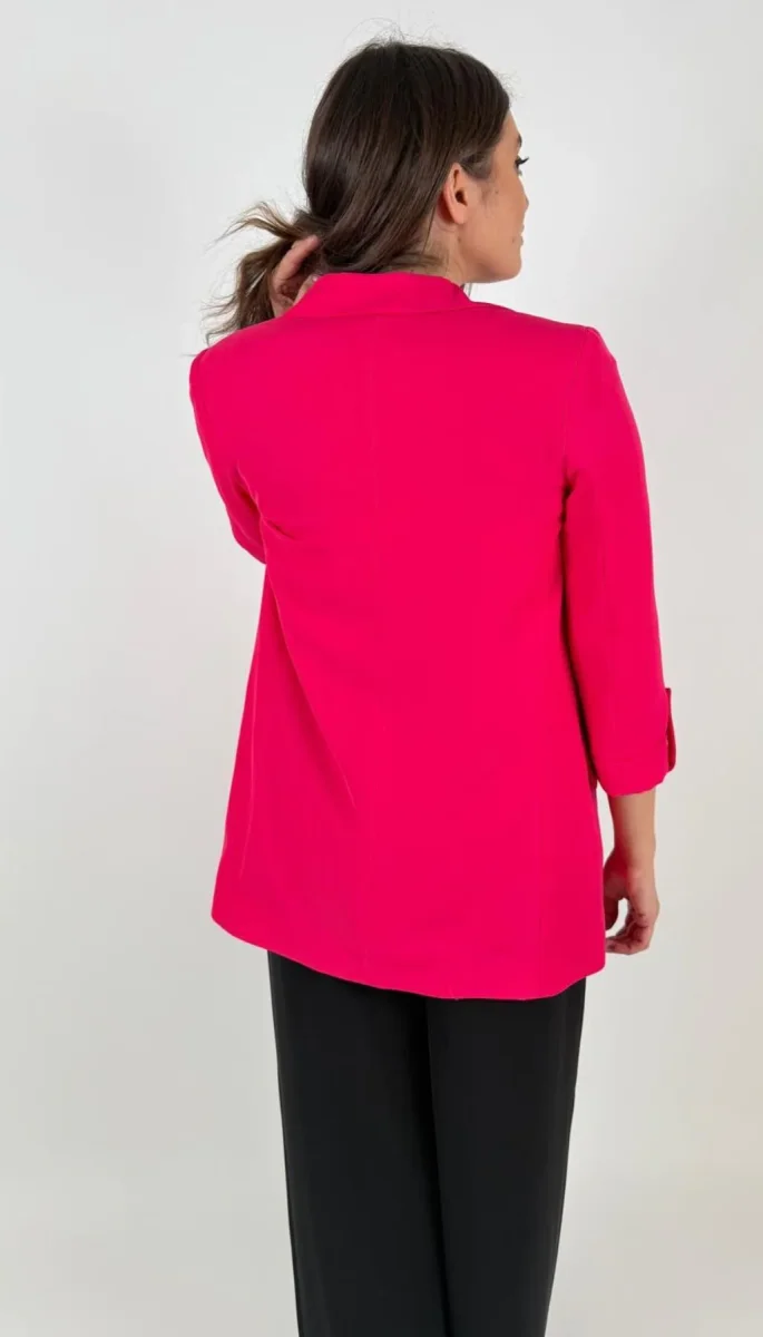 Perfetta sia per outfit da ufficio che per occasioni più fashion e glamour, questa giacca si abbina facilmente a pantaloni eleganti, jeans o abiti, trasformando anche il look più semplice in una mise sofisticata.