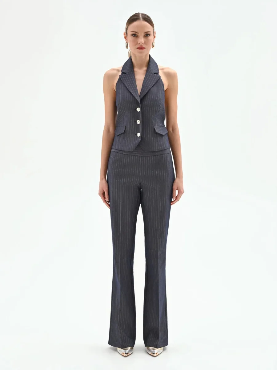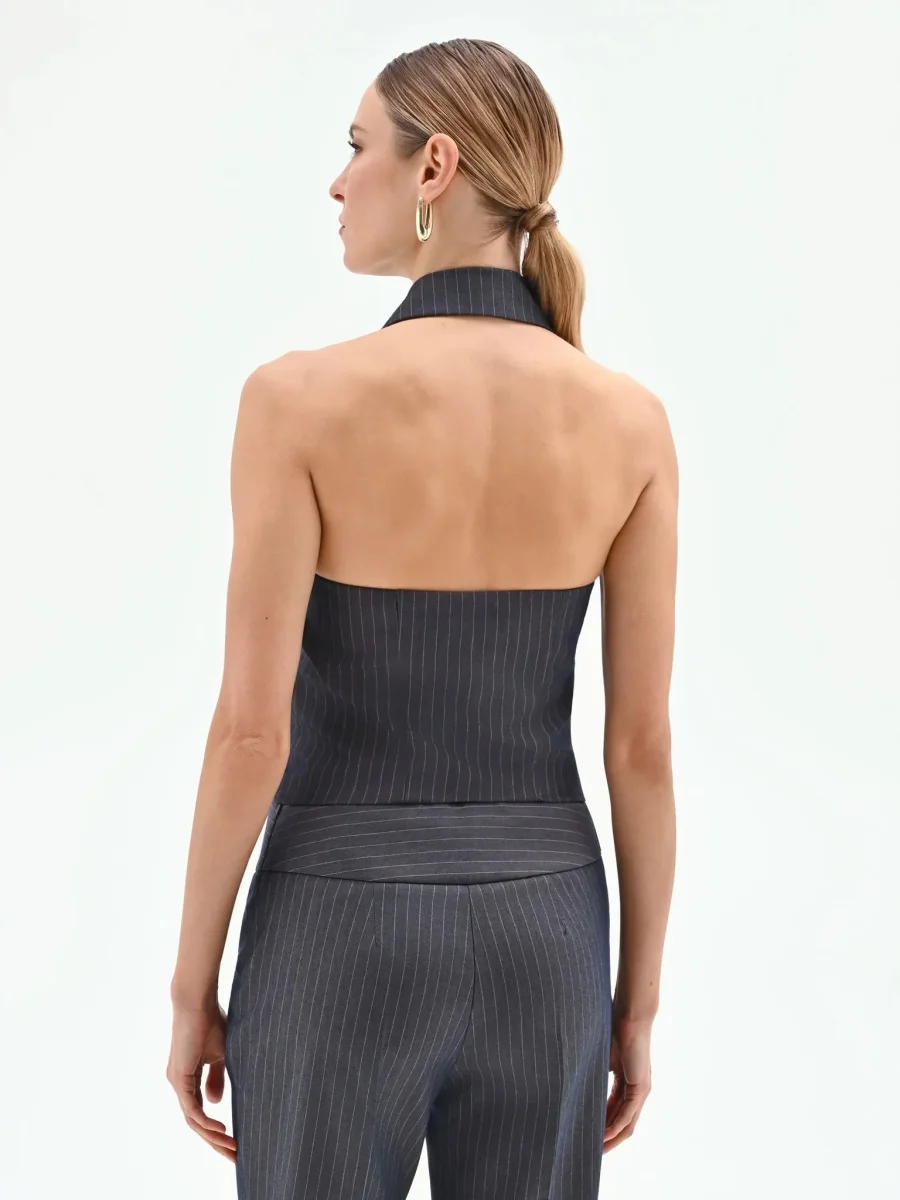 Gilet gessato con scollo all’americana