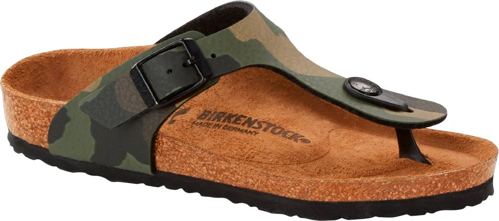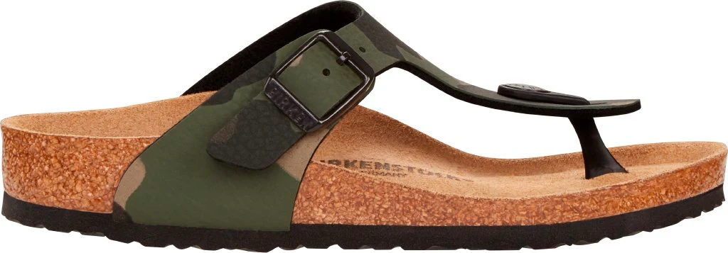Il modello BIRKENSTOCK Gizeh è un vero classico che unisce la stabilità ottimale a un design alla moda: tutta la scuola vorrà averlo. La tomaia è in Birko-Flor®, un materiale sintetico resistente all’usura e delicato per la pelle. Qui il sandalo si presenta tono su tono, dunque perfetto per un look camouflage alla moda. Può essere facilmente scambiato per vera pelle. Il plantare in colore coordinato completa l’aspetto raffinato del sandalo.