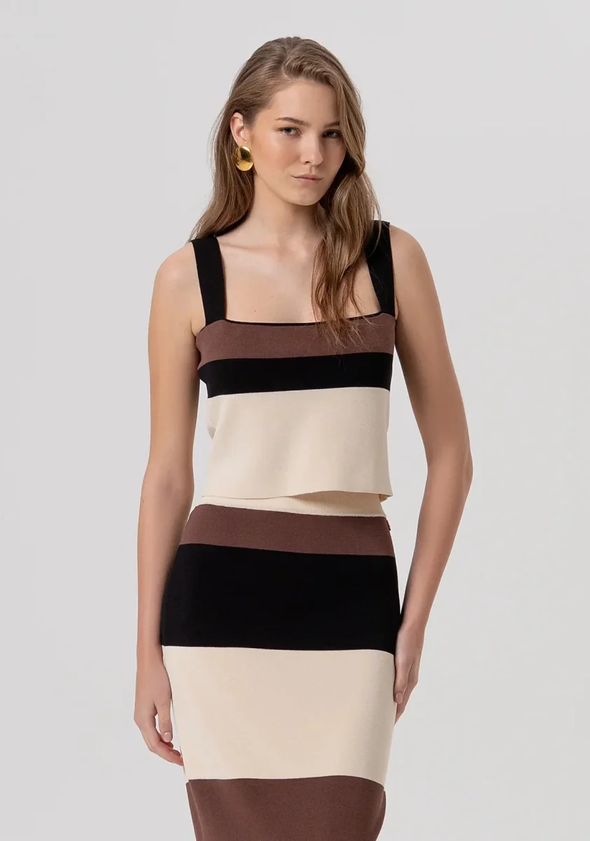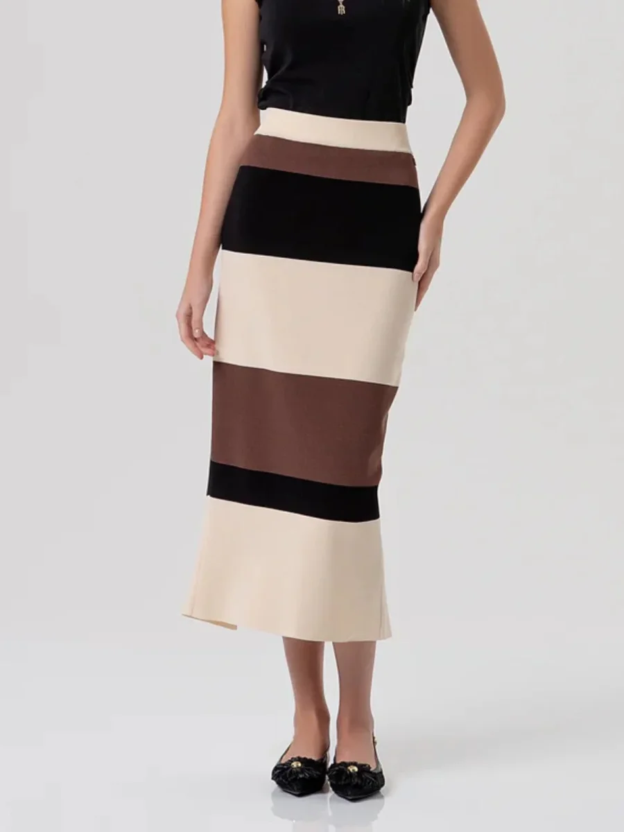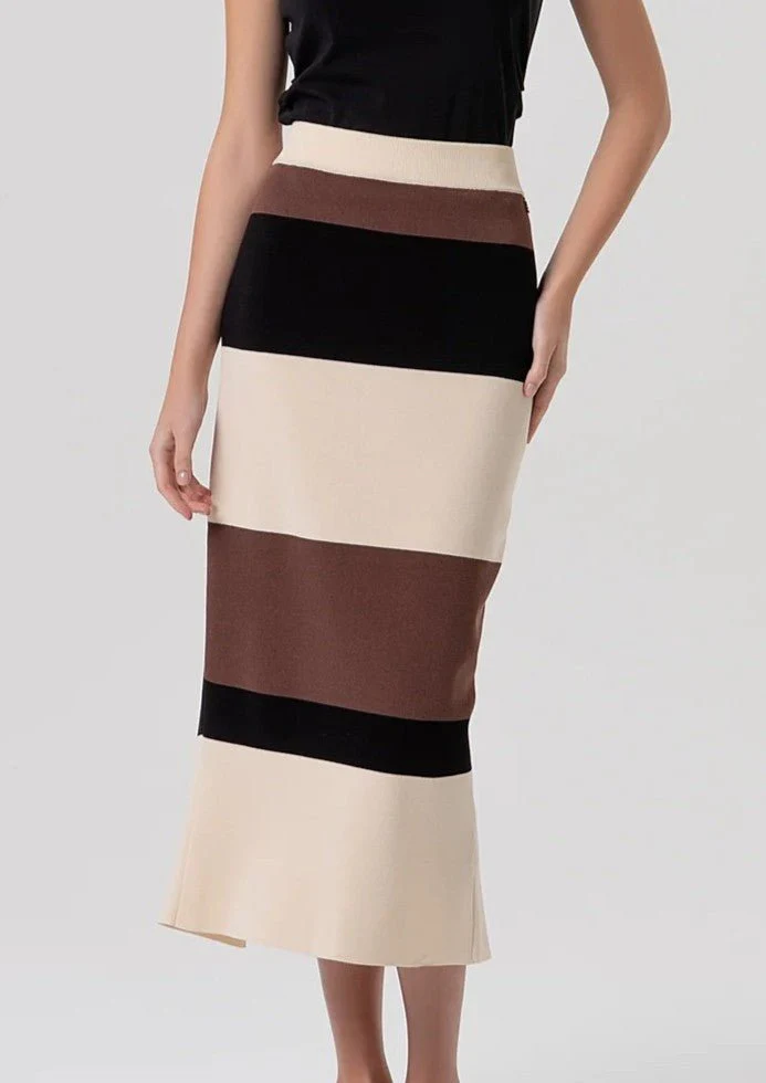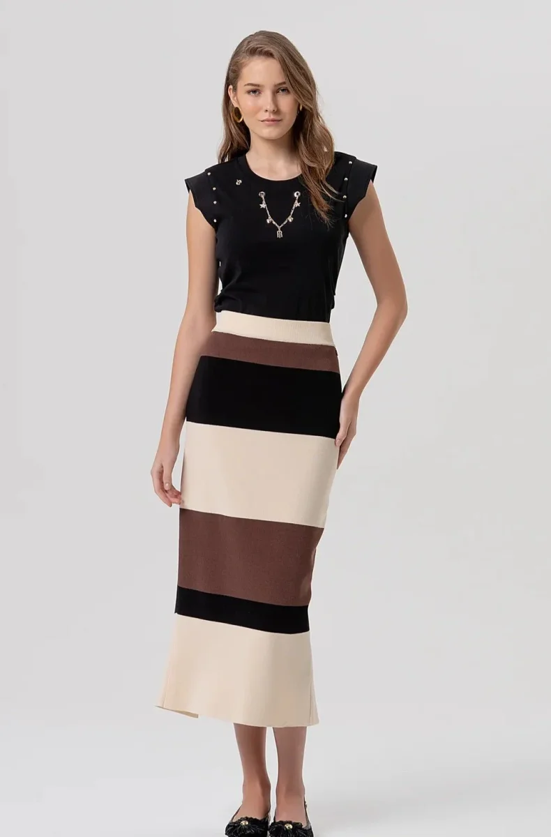 Gonna slim midi in maglia a righe