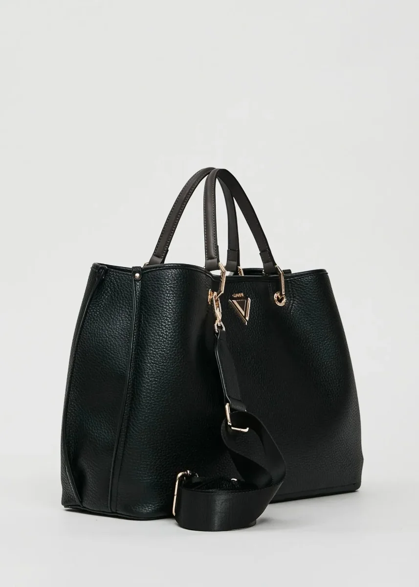 Scegli la borsa top handle in similpelle bottalata con logo in metallo e tracolla rimovibile in gros grain. Per un look urban chic impeccabile.