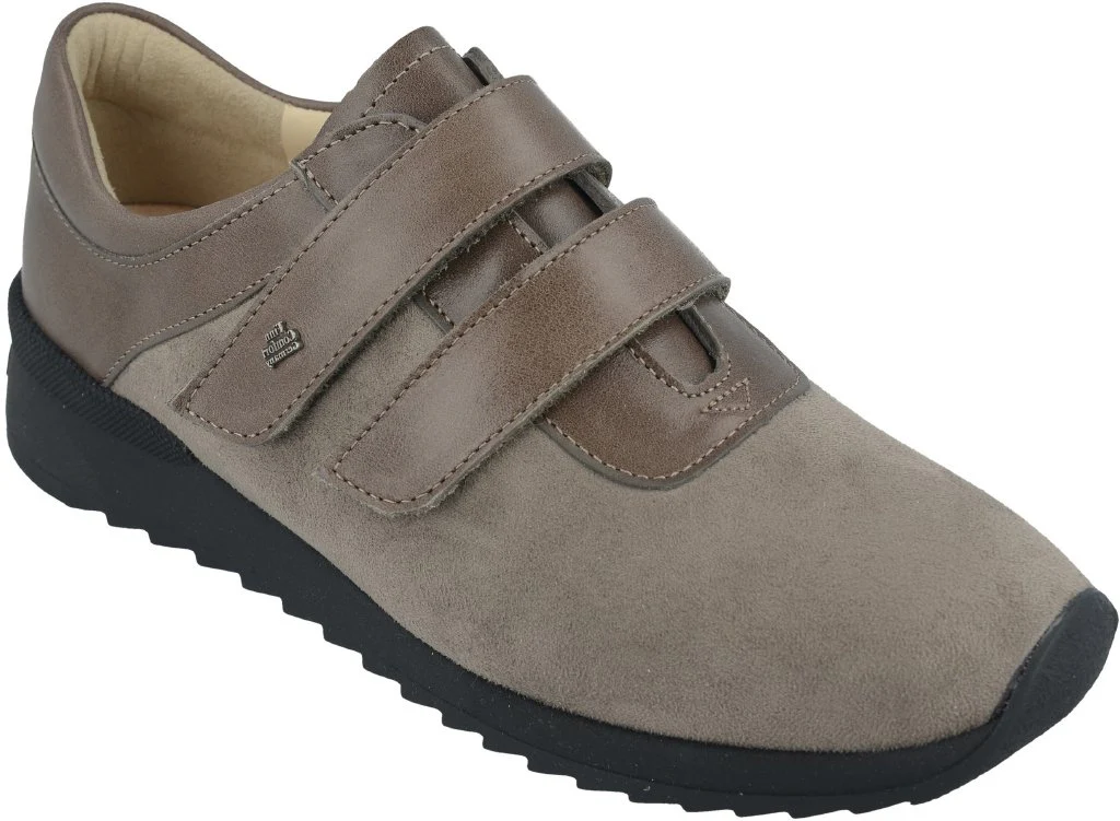 Sneaker da donna della linea FinnStretch con una cambratura da 14 mm. La tomaia dell’avampiede in materiale Stretch si adegua in ogni parte al piede, particolarmente importante per chi soffre di alluce valgo. Dotato di plantare ultramorbido ideale per piedi con pianta sensibile. L’imbottitura nella zona del malleolo assicura un comfort di calzata elevato e protegge da sfregamenti. Allacciatura con velcro per semplificare l’indossare delle scarpe.
