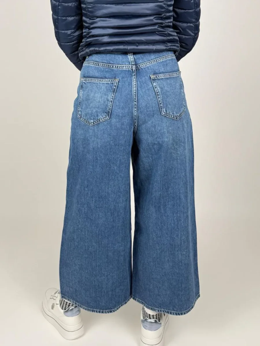 Realizzati in un morbido misto di cotone ed elastan, questi jeans assicurano il massimo comfort e una buona flessibilità per tutto il giorno. La loro vita alta e le gambe larghe offrono una vestibilità comoda e moderna, ideale per valorizzare la figura in modo raffinato.