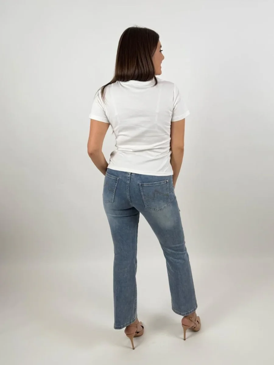 Scegli i jeans skinny in misto cotone elasticizzato effetto used con strass sul davanti. Design cropped per un look casual dal fascino glamour.