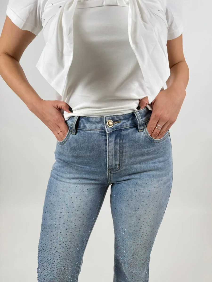 Jeans skinny in cotone con strass