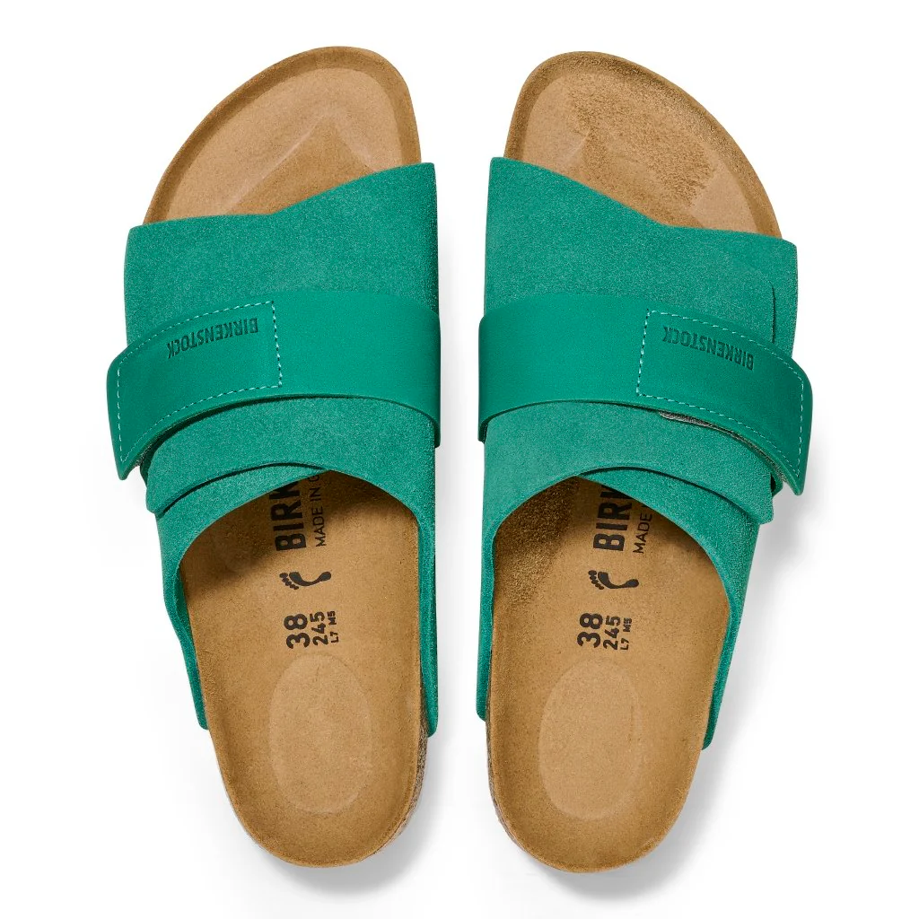 Il modello casual BIRKENSTOCK Kyoto è ispirato dal classico Zürich ed è caratterizzato da un design compatto con chiusura regolabile individualmente che garantisce stabilità ottimale ed è completata da dei rivetti decorativi. La tomaia è composta da pelle scamosciata particolarmente morbida, che aderisce al piede come una seconda pelle, in combinazione a pelle nabuk naturale.