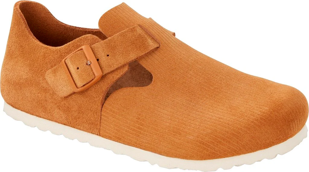 BIRKENSTOCK London è una variante del classico Boston. La sezione del tallone rialzato è caratteristica di questa semplice scarpa bassa senza cuciture. Vanta un aspetto naturale e rustico e una finitura a bordo grezzo e senza fodera. Questa versione presenta uno stile casual a coste. Perfetto per outfit streetstyle autentici! La tomaia è realizzata in morbida camoscio goffrato.