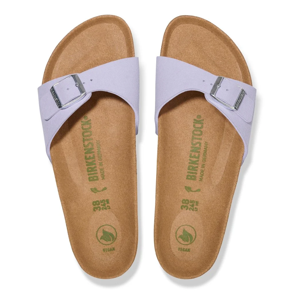 Il modello BIRKENSTOCK Madrid è un vero classico che entusiasma il mondo della moda con il suo design essenziale. È stato prodotto con un materiale rinnovato ed è ora disponibile in versione vegan. Il modello viene inoltre sottoposto a controlli effettuati da laboratori indipendenti per garantire che non vi siano parti di origine animale. La tomaia è in un materiale sintetico delicato sulla pelle e con la sensazione tattile di un velluto.