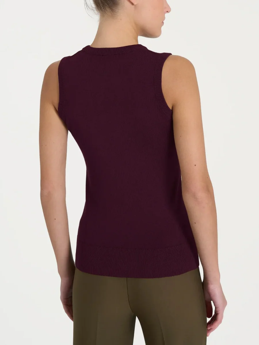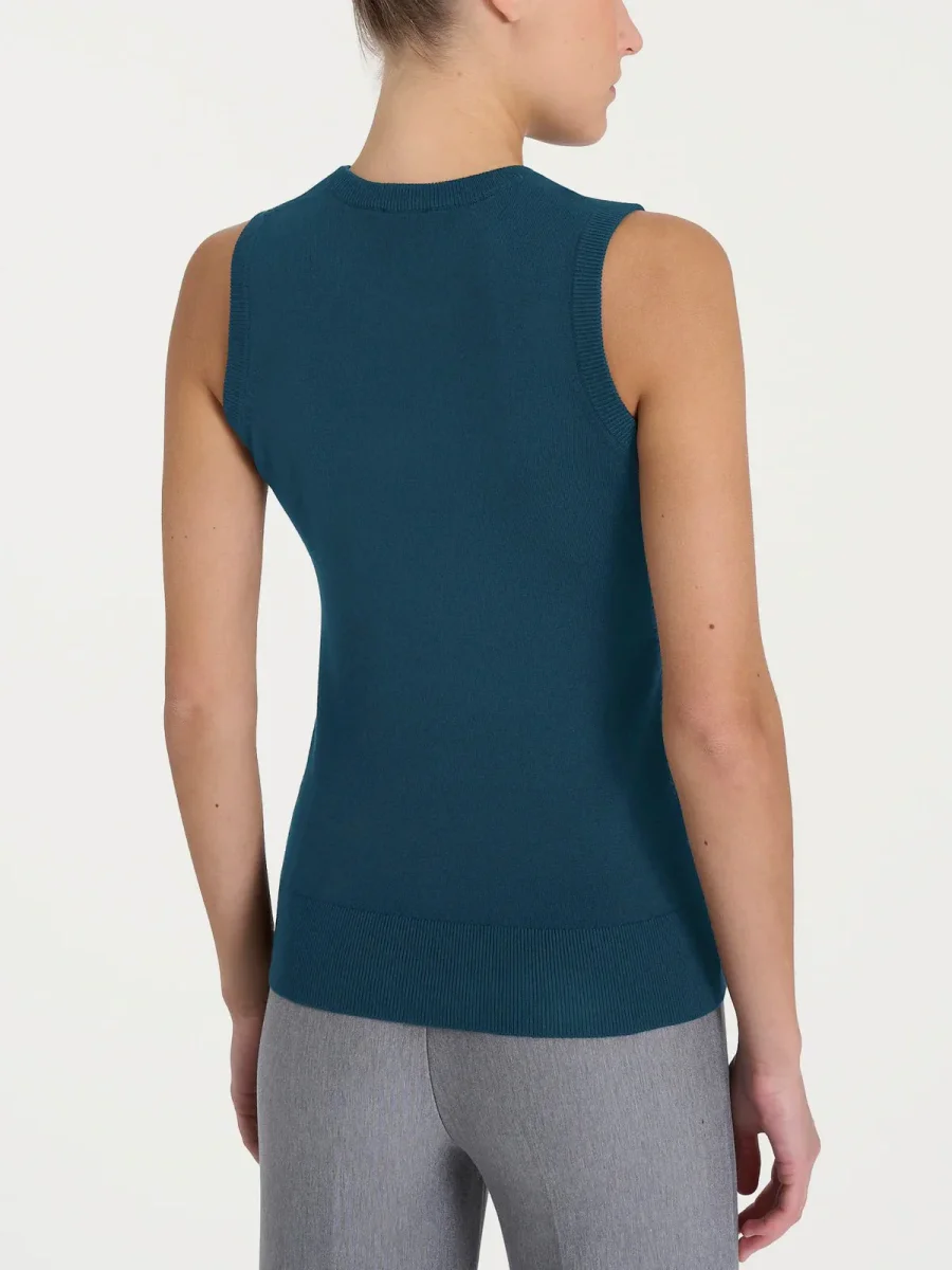 Maglia smanicata da donna in misto viscosa, tessuto in finezza 12, caldo e confortevole.