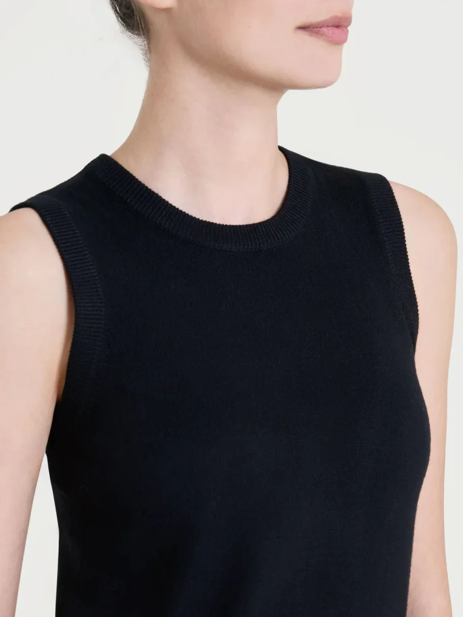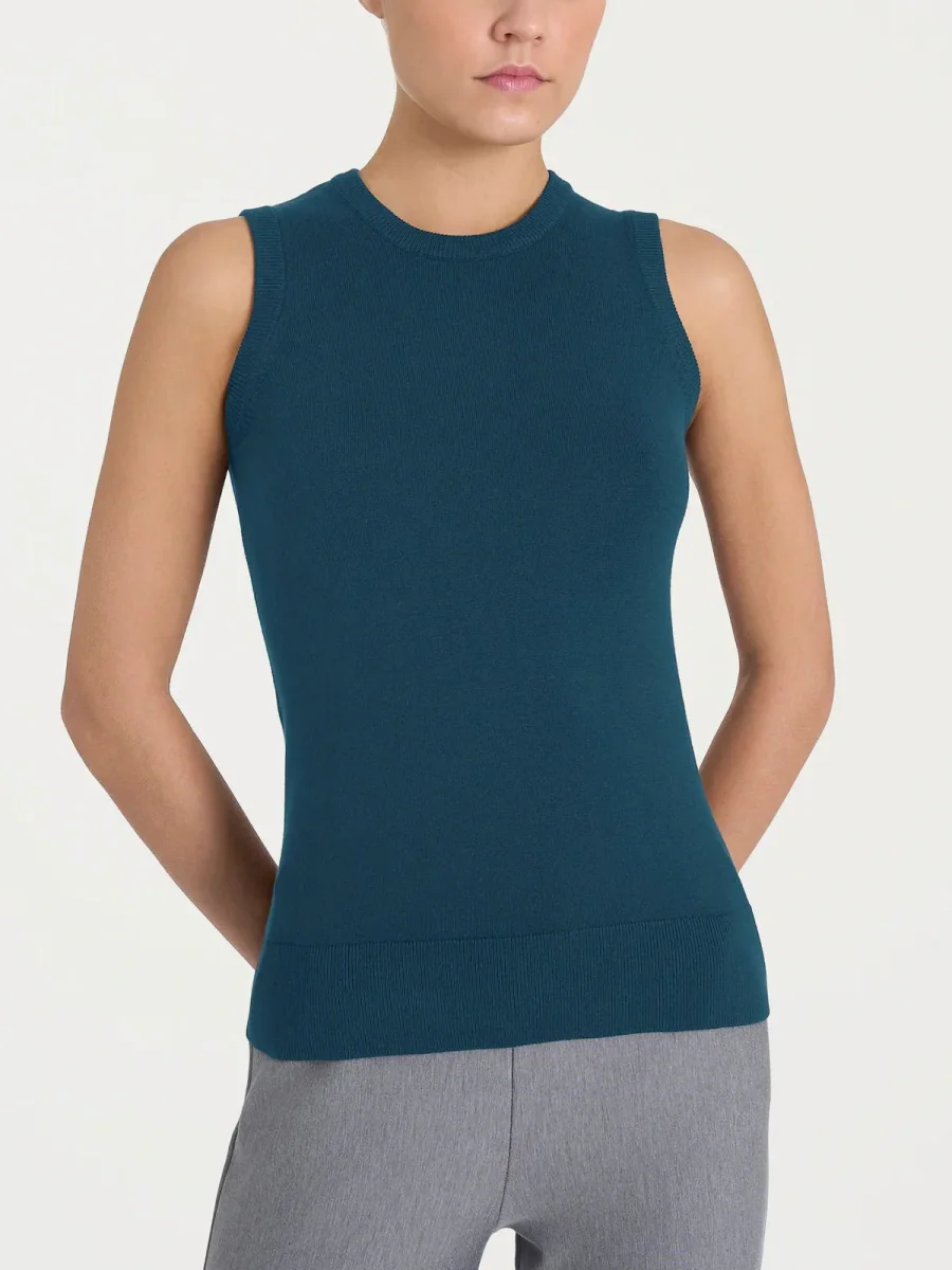 Questo modello girocollo senza maniche si adatta facilmente a tutte le stagioni, donando un leggero strato di copertura per i giorni caldi e uno strato base per quelli più freddi.