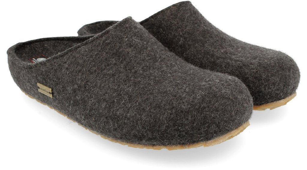 Questo modello è caratterizzato dalla tomaia in feltro di pura lana vergine. Il piede poggia su un plantare anatomico in sughero e lattice, ricoperto da feltro di lana. Sughero e feltro creano un microclima ideale e fanno sì che i piedi rimangano sempre asciutti. La suola di termorubber antiscivolo garantisce un appoggio sicuro.