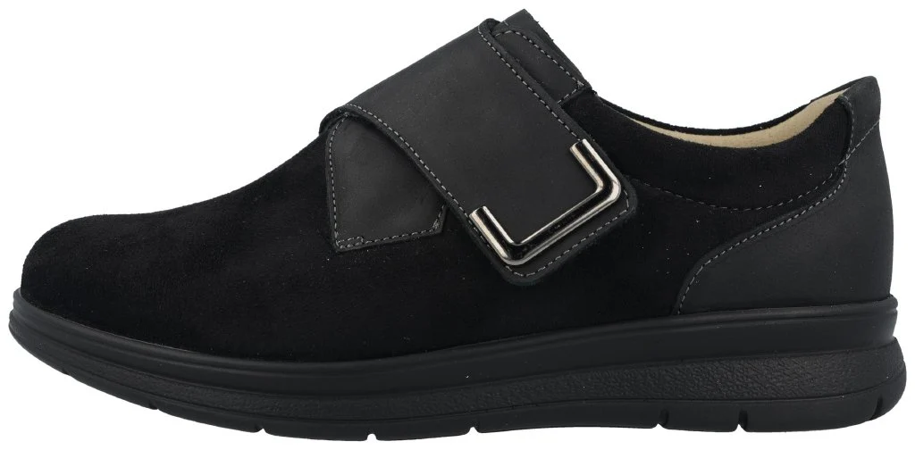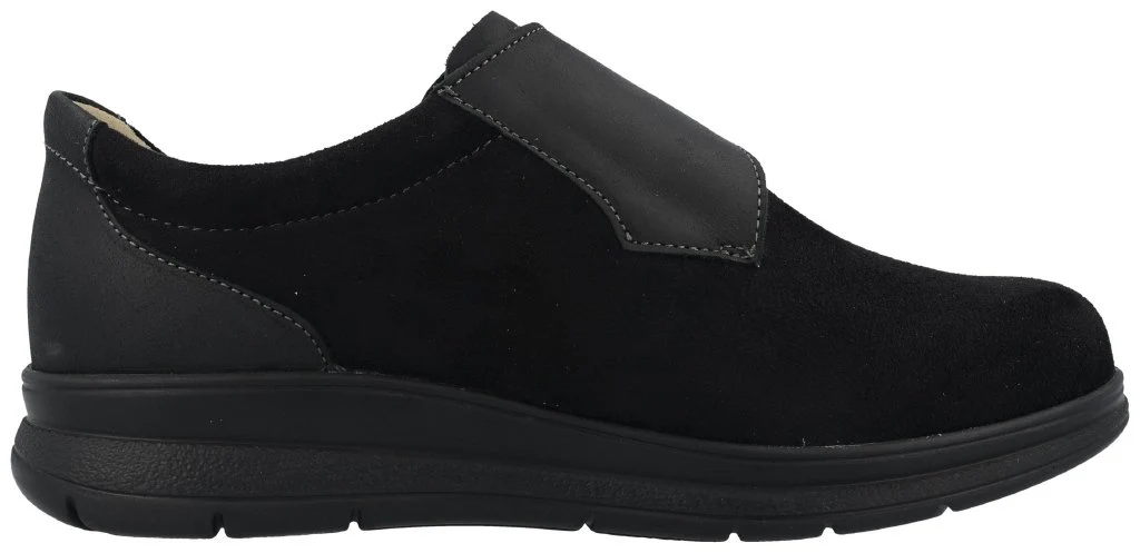 Scarpa da donna FinnStretch con una cambratura da 17 mm. La tomaia dell’avampiede interamente di FinnStretch si adegua in ogni parte al piede, particolarmente importante per le parti sensibili. Il bordo imbottito intorno la caviglia protegge da sfregamenti. Montato su forma della linea FinnPlus offre ampio spazio nell’area delle testine metatarsali. Ideale per piedi carnosi e con collo alto. Dotato di plantare ultramorbido.