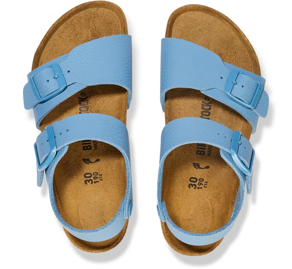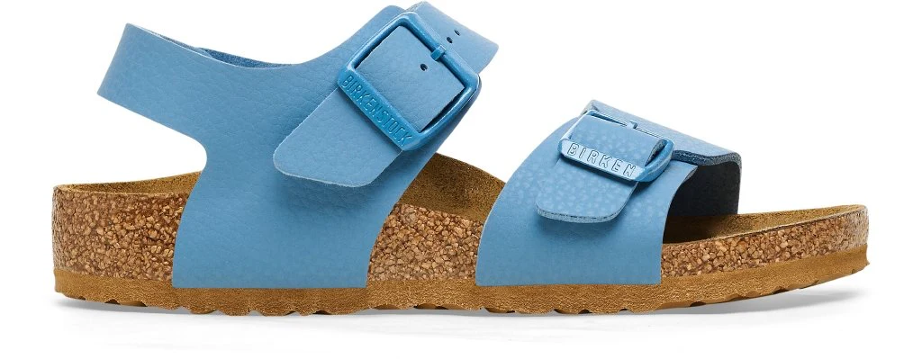 Il modello BIRKENSTOCK New York è perfetto per bambini che amano il movimento perché grazie agli ampi cinturini i sandali rimangono ben saldi ai piedi anche quando le battaglie si fanno più scatenati accese. Nei giorni particolarmente caldi, le aperture laterali assicurano un ottimo microclima all’interno della scarpa anche durante i giochi scatenati. La tomaia è realizzata in materiale sintetico Birko-Flor®, resistente e delicato sulla pelle. Questo modello classico si presenta in una nuova veste grazie al gioco di contrasti raffinato e sembra essere fatto in pelle vera. La suola di colore abbinato, il plantare e le fibbie completano il look raffinato di questo modello.