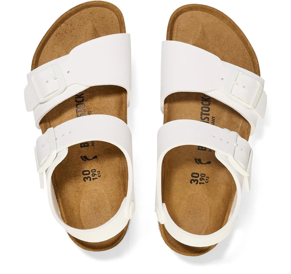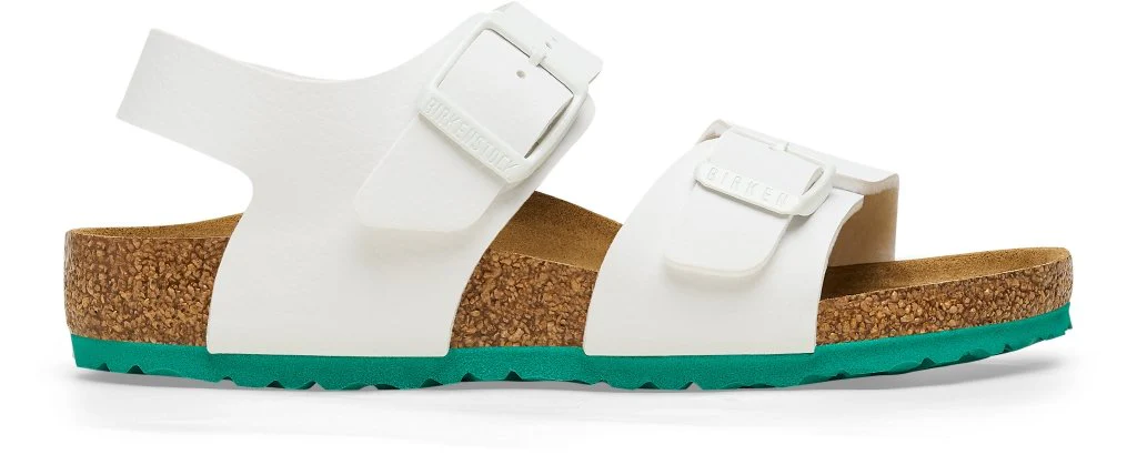 Il modello BIRKENSTOCK New York è perfetto per bambini che amano il movimento perché grazie agli ampi cinturini i sandali rimangono ben saldi ai piedi anche quando le battaglie si fanno più scatenati accese. Nei giorni particolarmente caldi, le aperture laterali assicurano un ottimo microclima all’interno della scarpa anche durante i giochi scatenati. La tomaia è realizzata in materiale sintetico Birko-Flor®, resistente e delicato sulla pelle. Questo modello classico si presenta in una nuova veste grazie al gioco di contrasti raffinato e sembra essere fatto in pelle vera. La suola di colore abbinato, il plantare e le fibbie completano il look raffinato di questo modello.