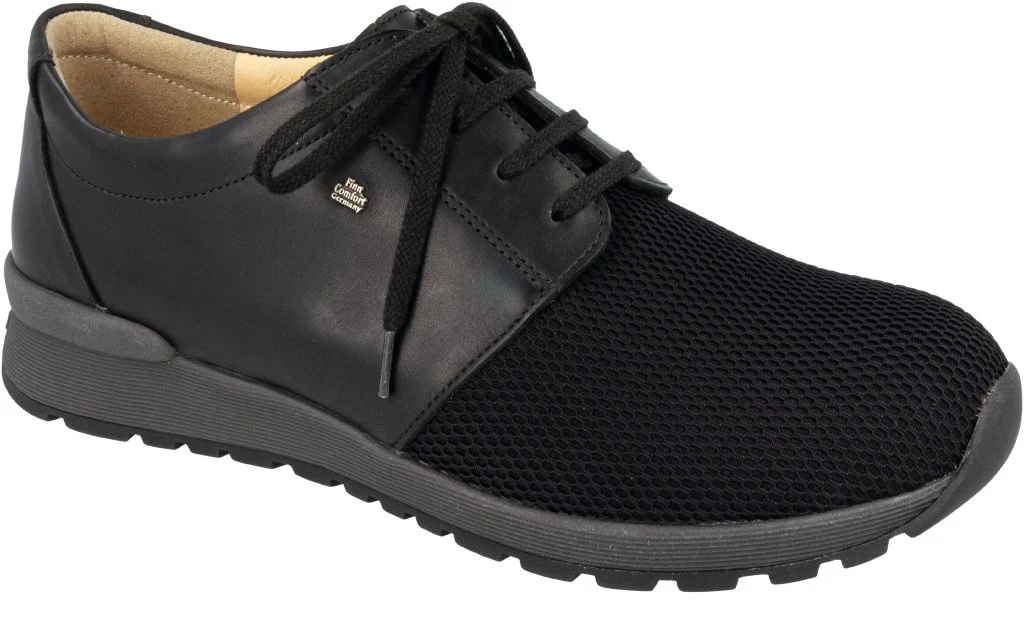 Sneaker da uomo FinnStretch con una cambratura da 10 mm. La tomaia dell’avampiede interamente di FinnStretch si adegua in ogni parte al piede, particolarmente importante per chi soffre di alluce valgo. Dotato di plantare ultramorbido ideale per piedi con pianta sensibile. L’imbottitura nella zona del malleolo assicura un comfort di calzata elevato e protegge da sfregamenti. La suola profilata antiscivolo in termorubber assicura un’aderenza ottimale e un appoggio sicuro.