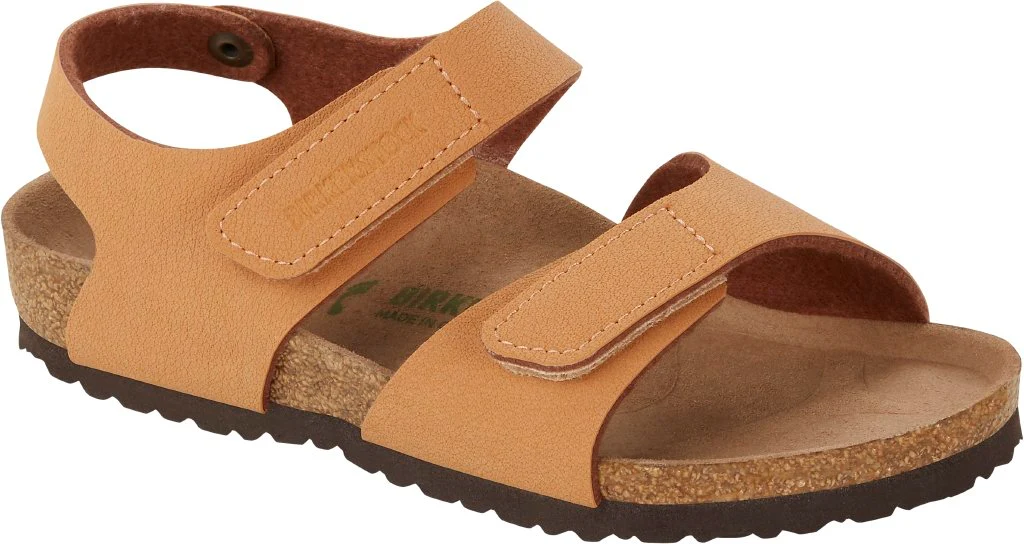 BIRKENSTOCK Palu garantisce un appoggio ottimale, conferendo stabilità al piede, anche per i movimenti selvaggi dei più piccolini. Questo anche grazie ai suoi due cinturini con chiusura in velcro. Inoltre, grazie alla facilità di indosso, questo modello evita lo stress di prima mattina. Perfetto per i piedini impazienti dei bimbi! Questa versione in coloring blocking gioca con i contrasti e fa risplendere i sandali di nuovi colori. La tomaia è in Birko-Flor®, un materiale sintetico resistente all’usura e delicato per la pelle, che presenta un effetto pelle nabuk pregiata e anche tessuto e colore sono davvero simili a quelli della vera pelle.