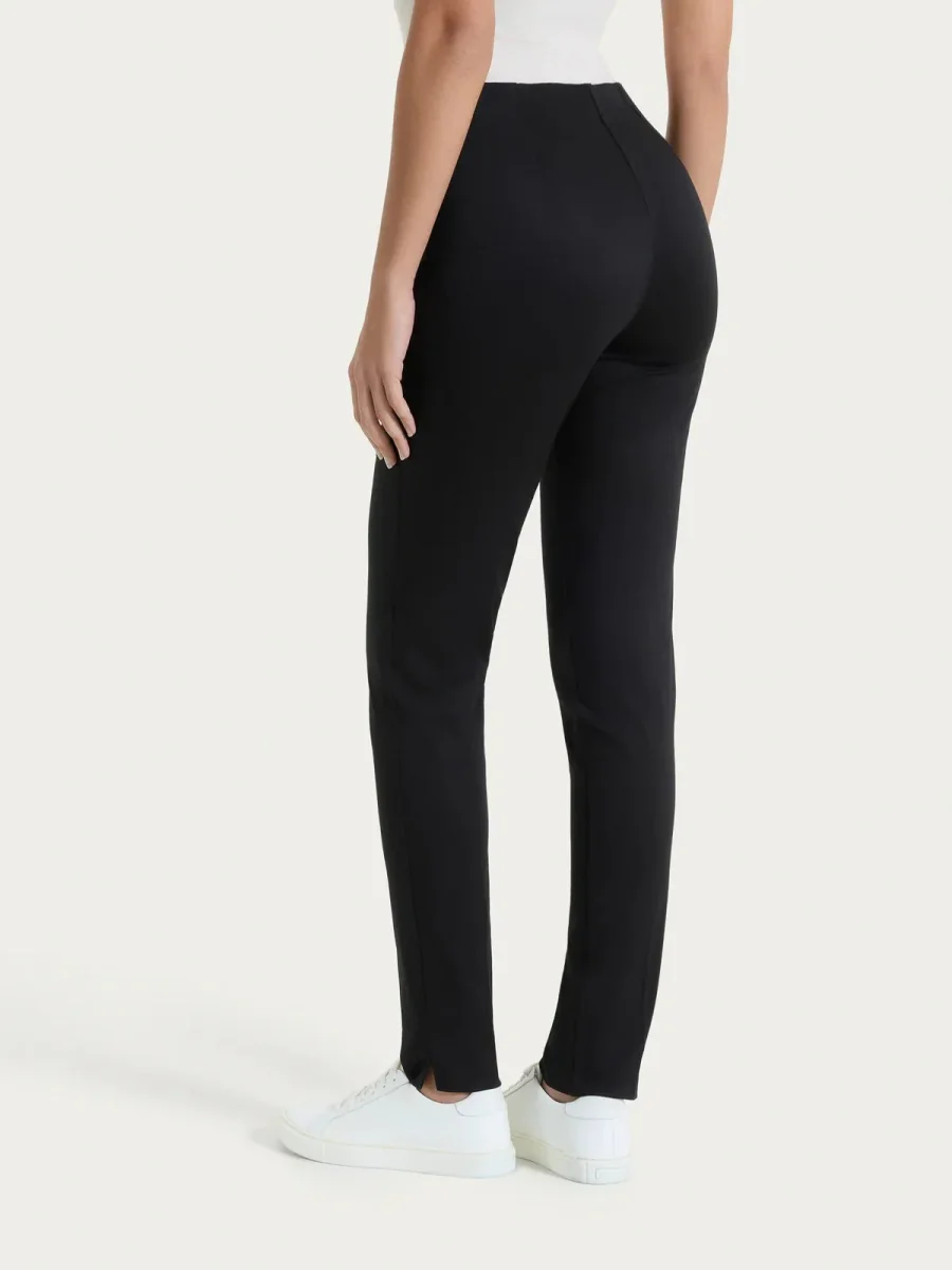 Questo modello è costruito con vita elasticizzata, senza tasche e pratici spacchetti laterali alla caviglia, comodo come indossare un leggings pur mantenendo l’eleganza di un pantalone.