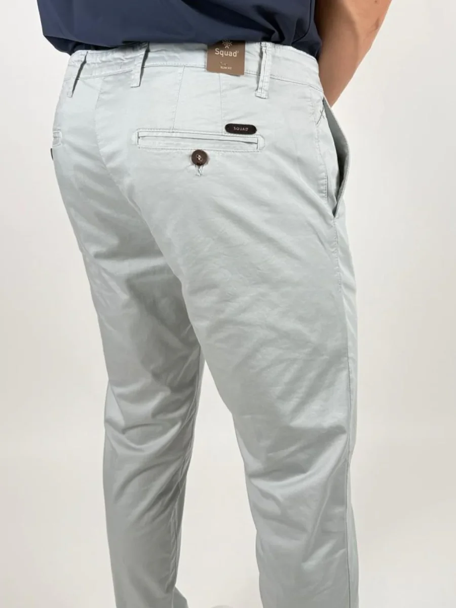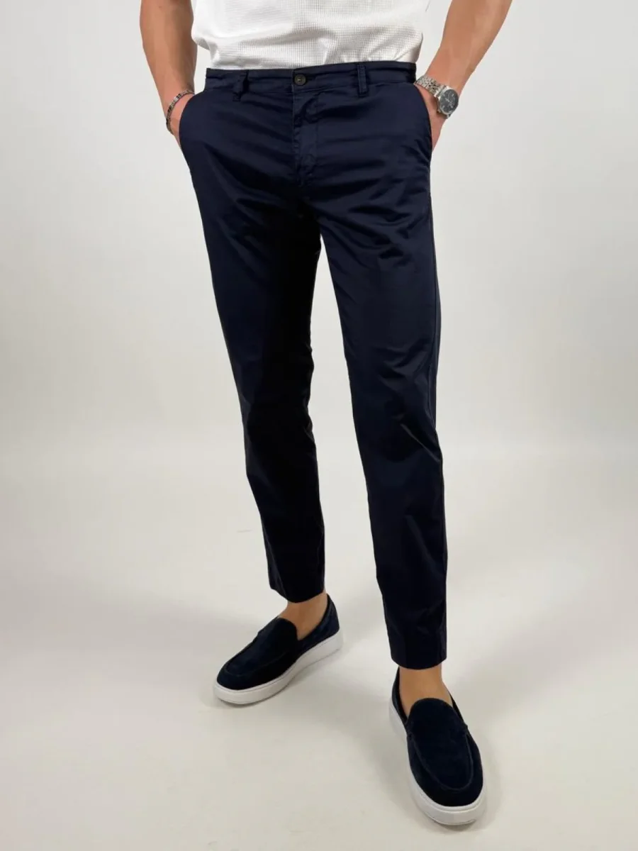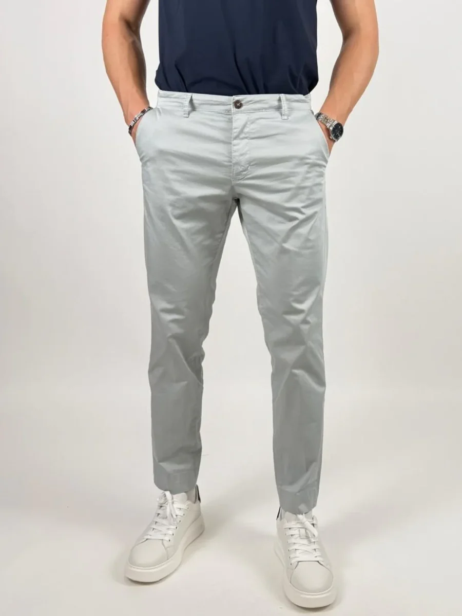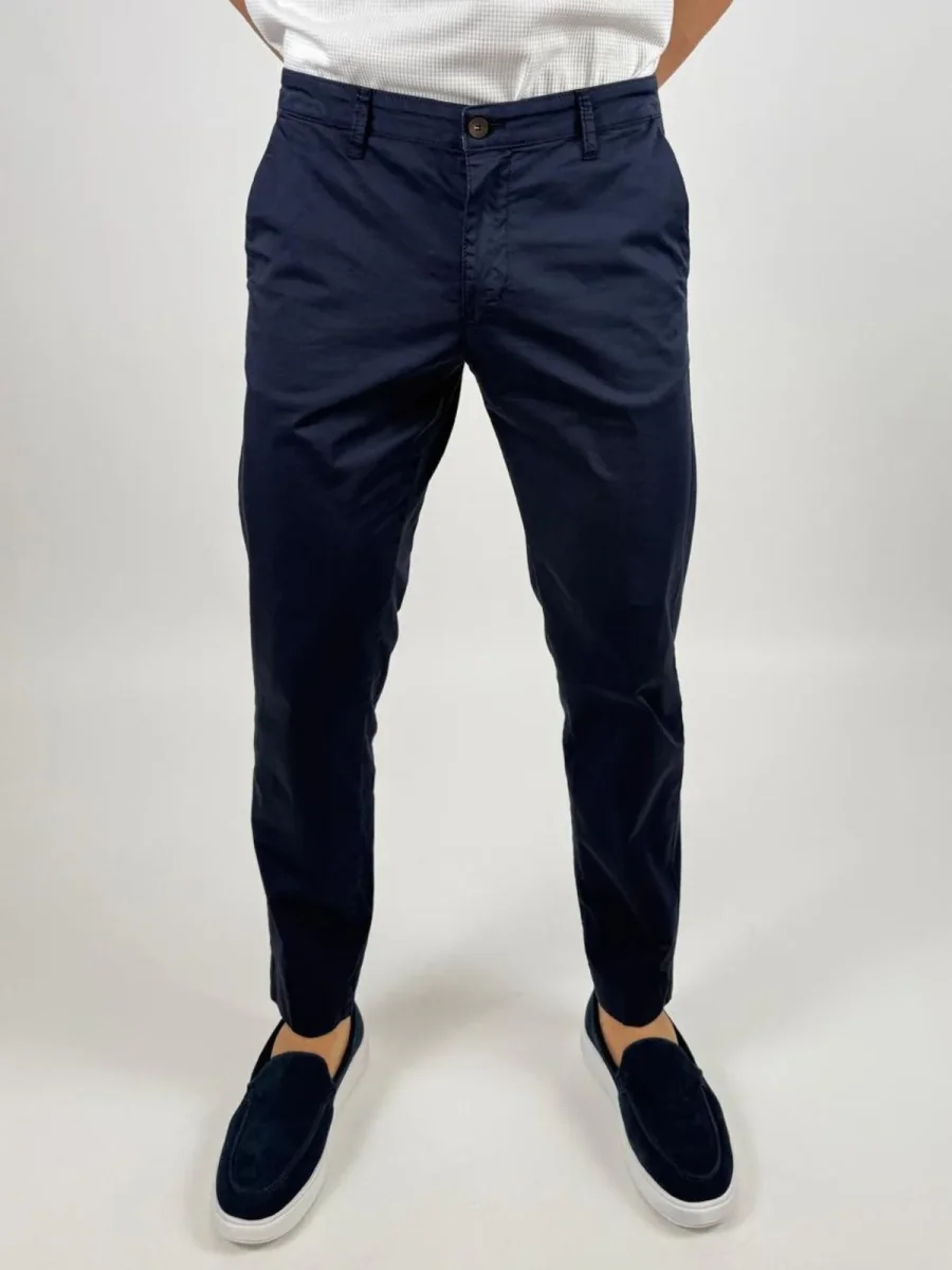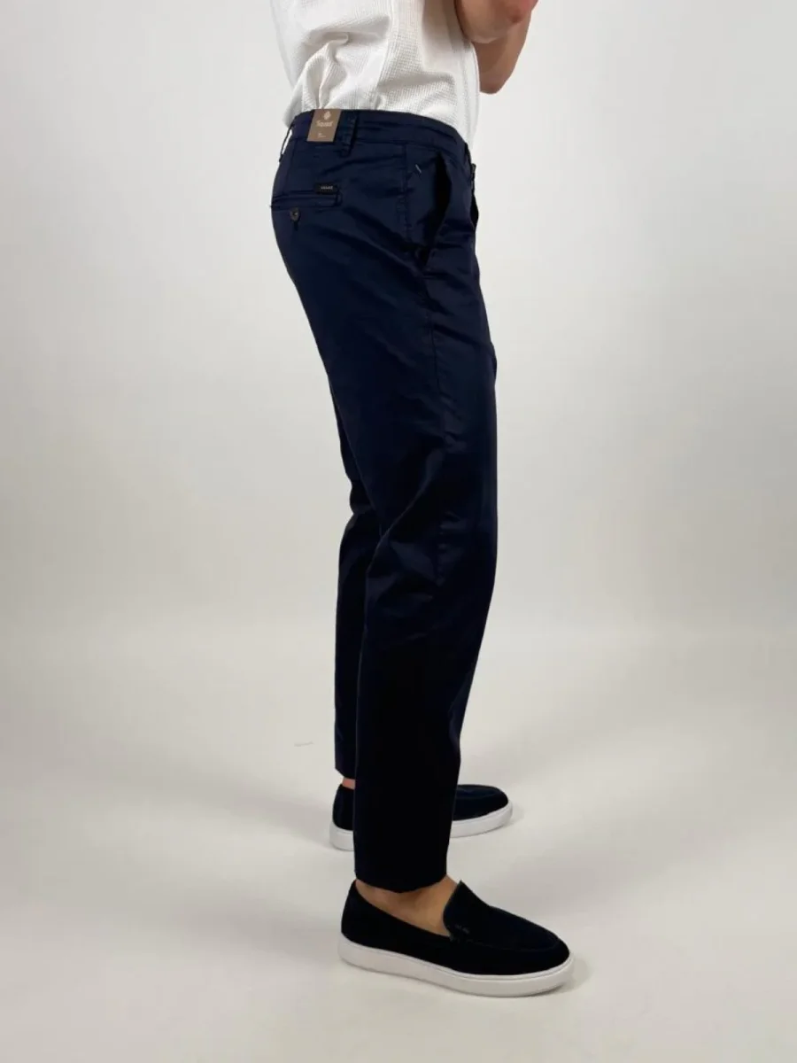 Pantalone Napoli226002 dal taglio elegante e contemporaneo, con tasche laterali e tasche posteriori a filetto con bottone. Il tessuto leggero e fluido garantisce comfort e libertà di movimento durante tutta la giornata.