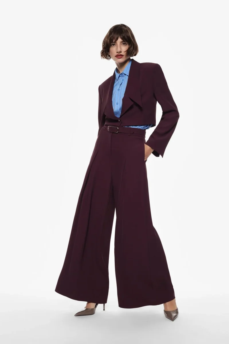 Esplora l’eleganza senza tempo con questi pantaloni ampi a vita alta. La silhouette fluida e la cintura accentuata offrono un look sofisticato e contemporaneo, perfetto per l’ambiente metropolitano. Ideali per chi desidera combinare comfort e stile in qualsiasi occasione formale o lavorativa, aggiungendo un tocco di raffinatezza al tuo guardaroba