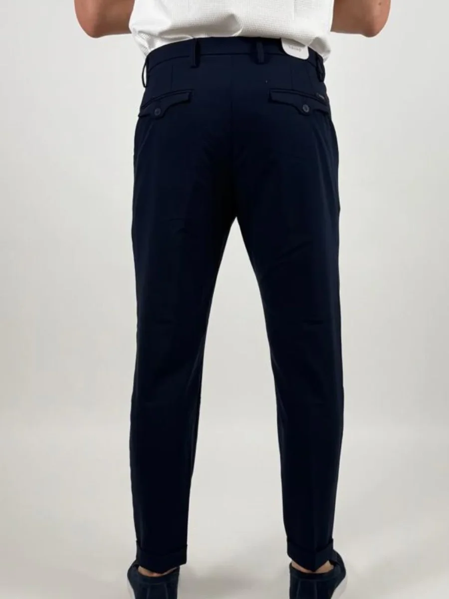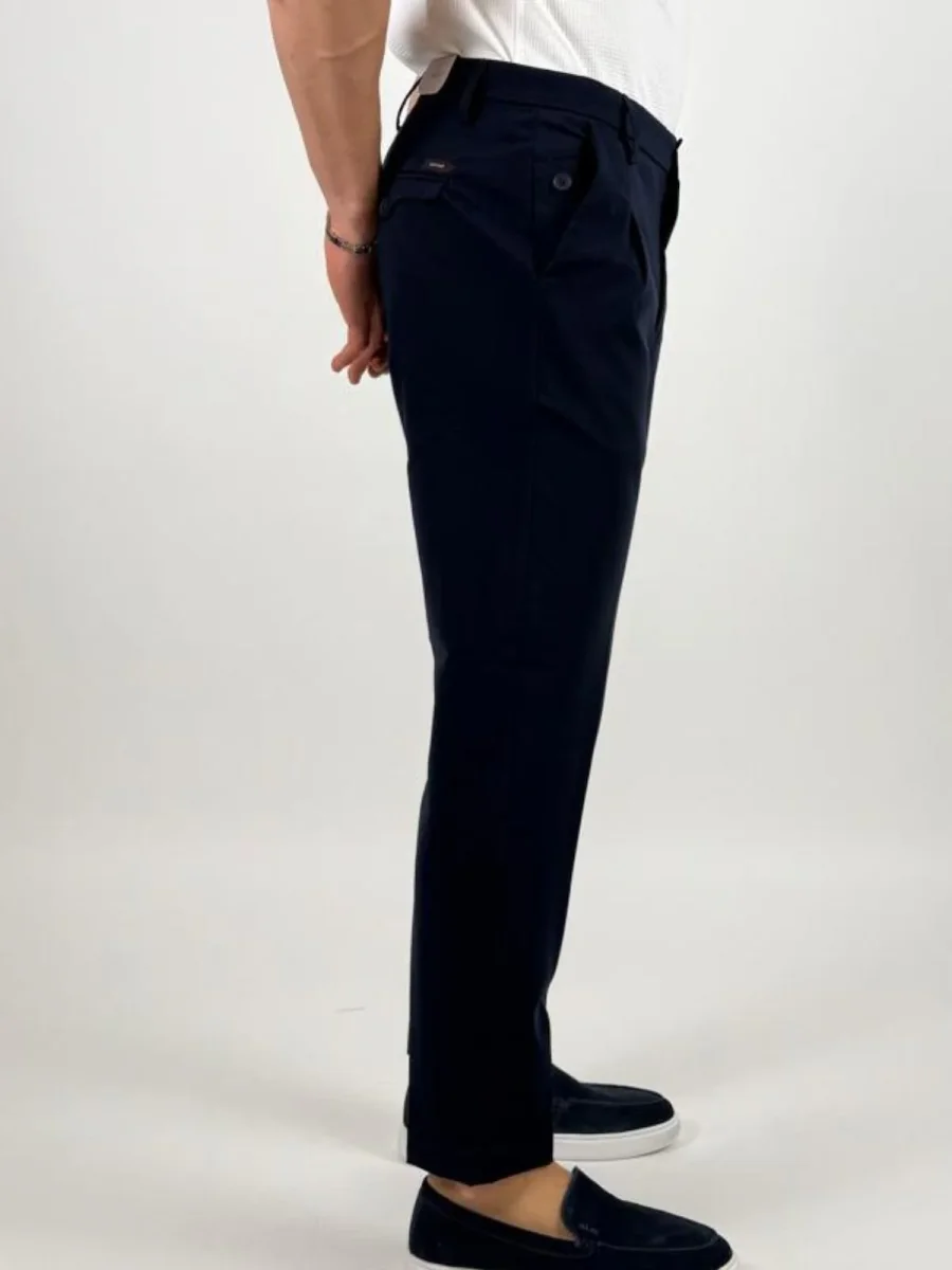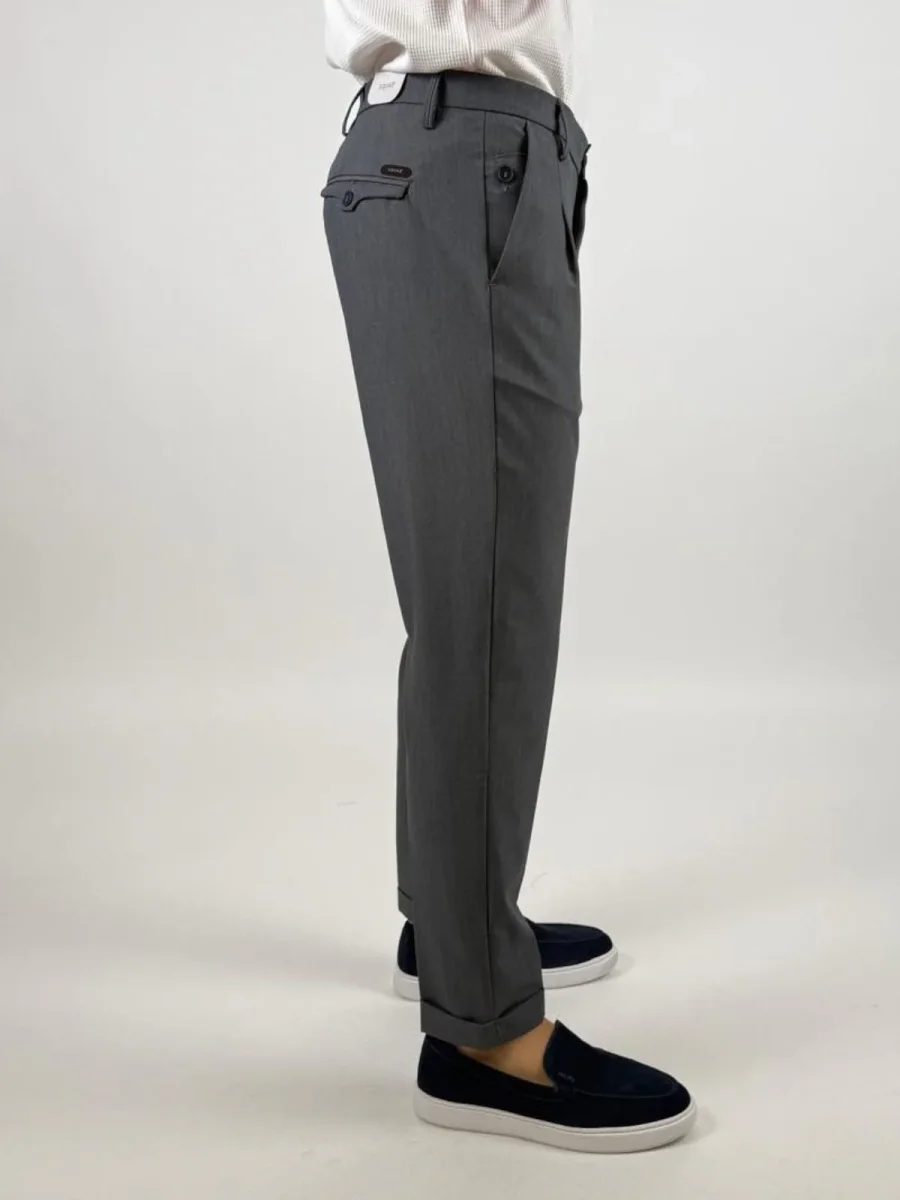 Pantalone Rio/P226015 uomo dal design elegante e contemporaneo, caratterizzato da una vestibilità slim che valorizza la silhouette mantenendo comfort e libertà di movimento. Il modello presenta una raffinata pinces frontale che dona struttura e un tocco sartoriale al capo.
