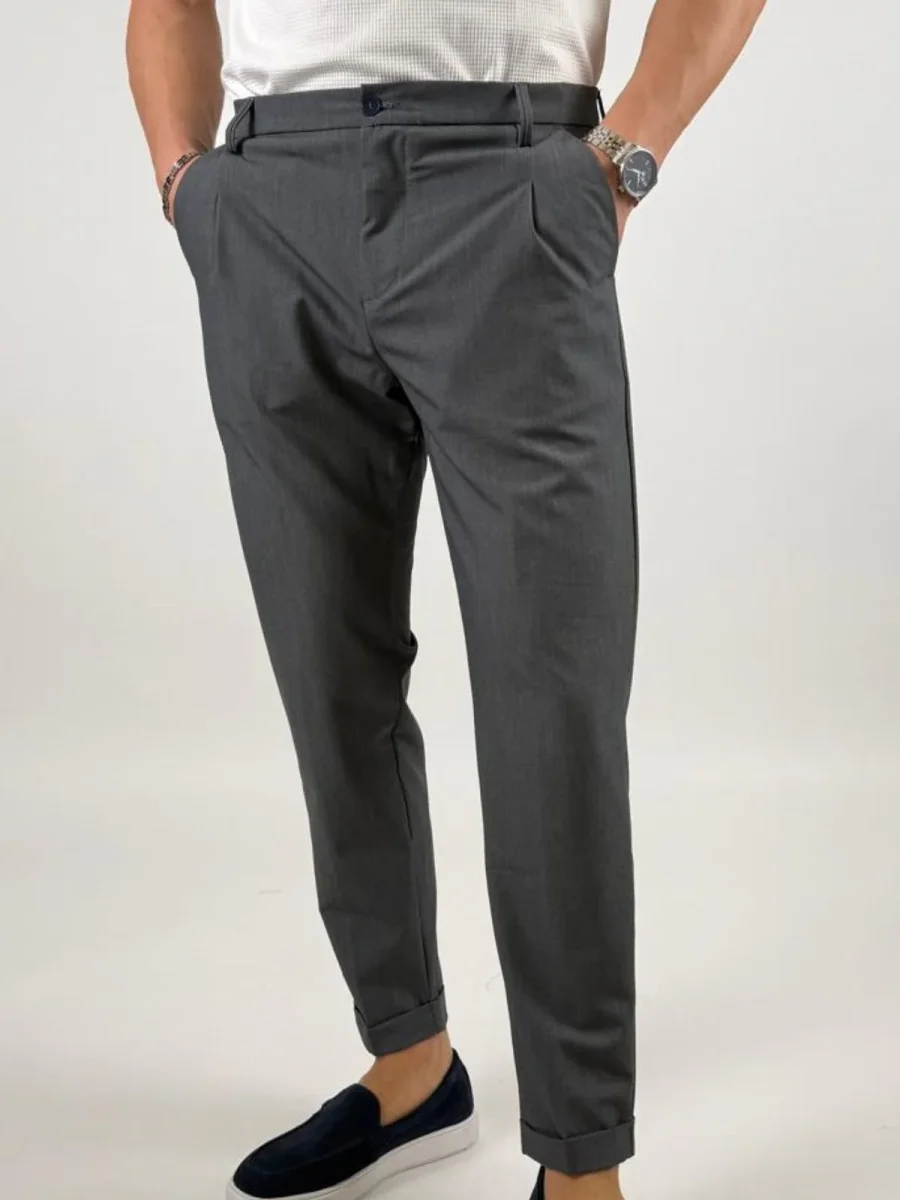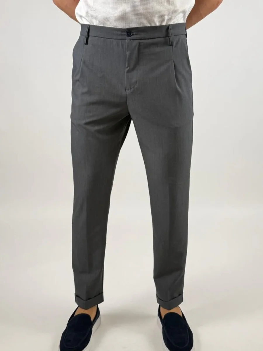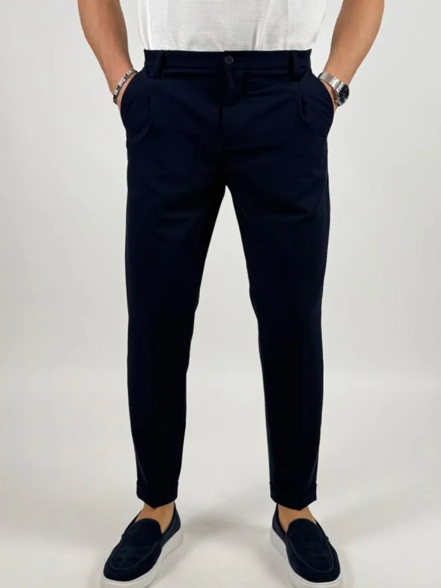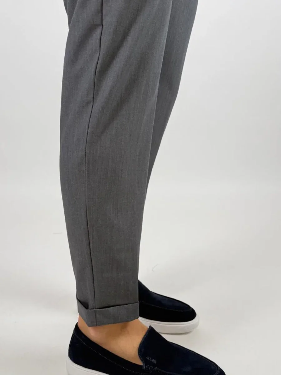 Pantalone Rio/P226015 uomo dal design elegante e contemporaneo, caratterizzato da una vestibilità slim che valorizza la silhouette mantenendo comfort e libertà di movimento. Il modello presenta una raffinata pinces frontale che dona struttura e un tocco sartoriale al capo.