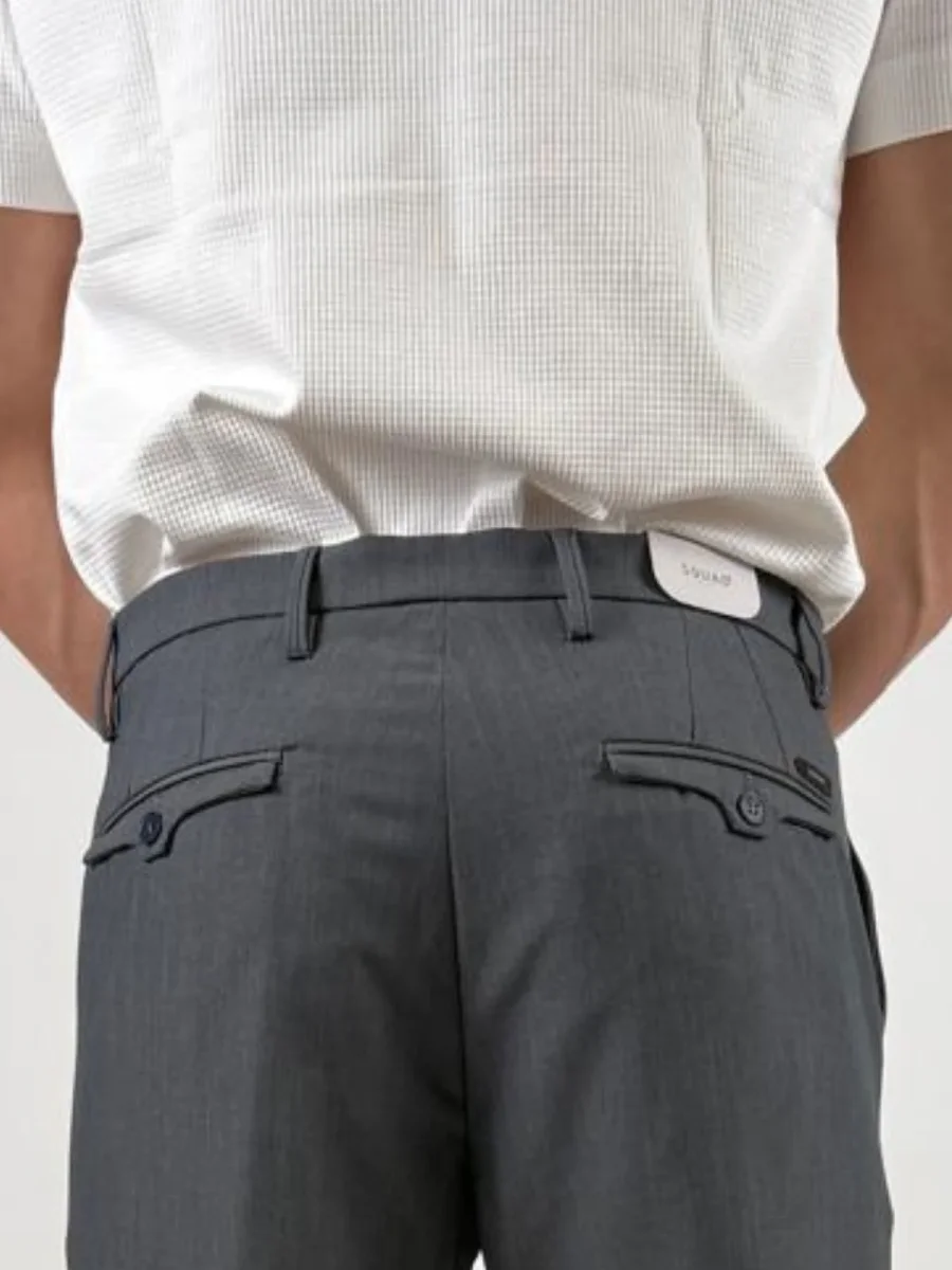 La chiusura con bottone e zip, insieme ai passanti in vita, permette di abbinarlo facilmente a cinture per un look più formale. Le tasche laterali oblique e le tasche posteriori con patta completano il design con praticità e stile.