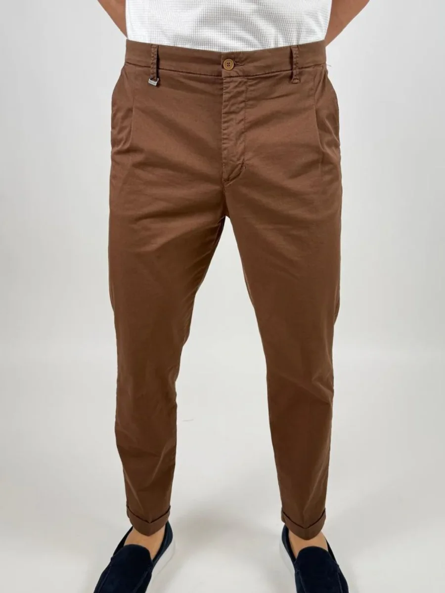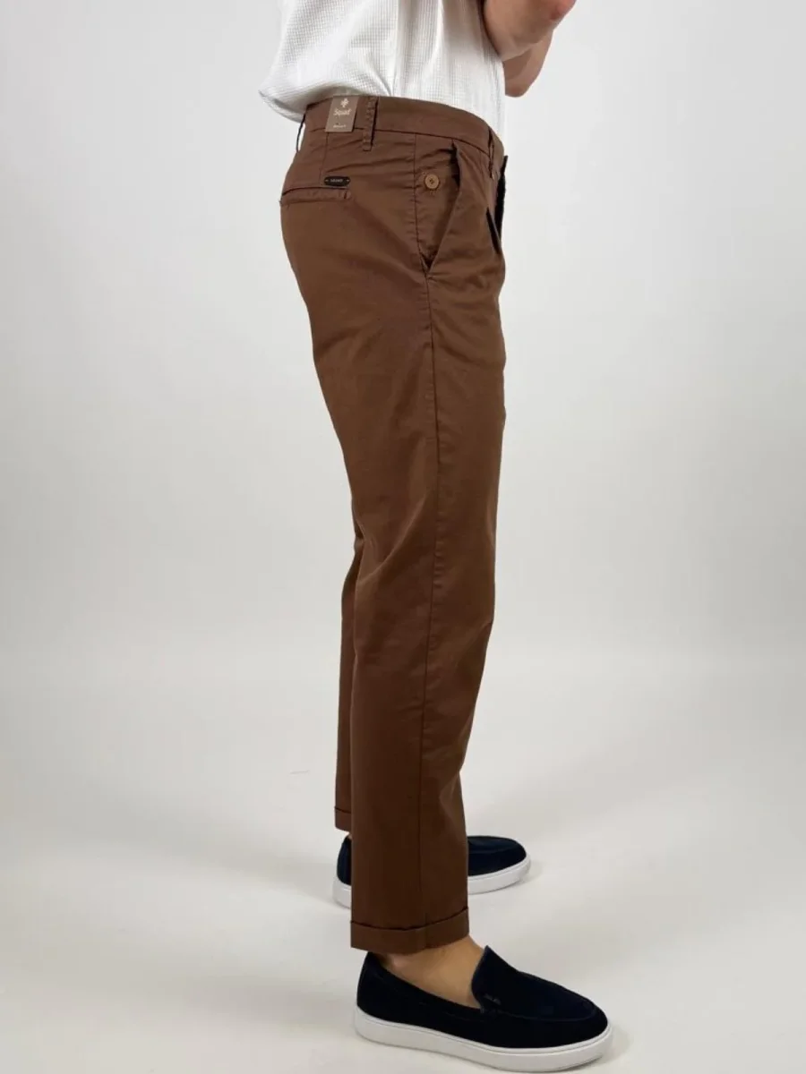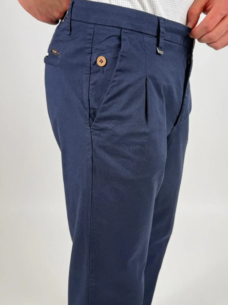 Pantalone Rio226001leggera micro gabardina stretch di cotone, modello chino, con chiusura zip nascosta, pinces, tasche america, taschino portamonete con bottone e gamba con risvolto