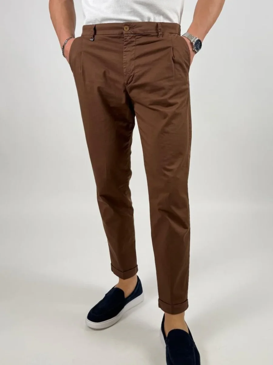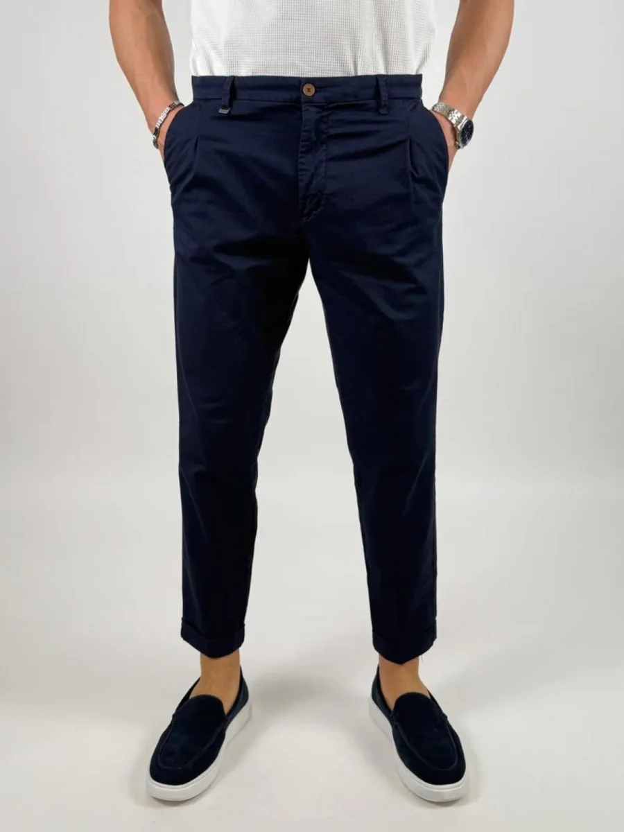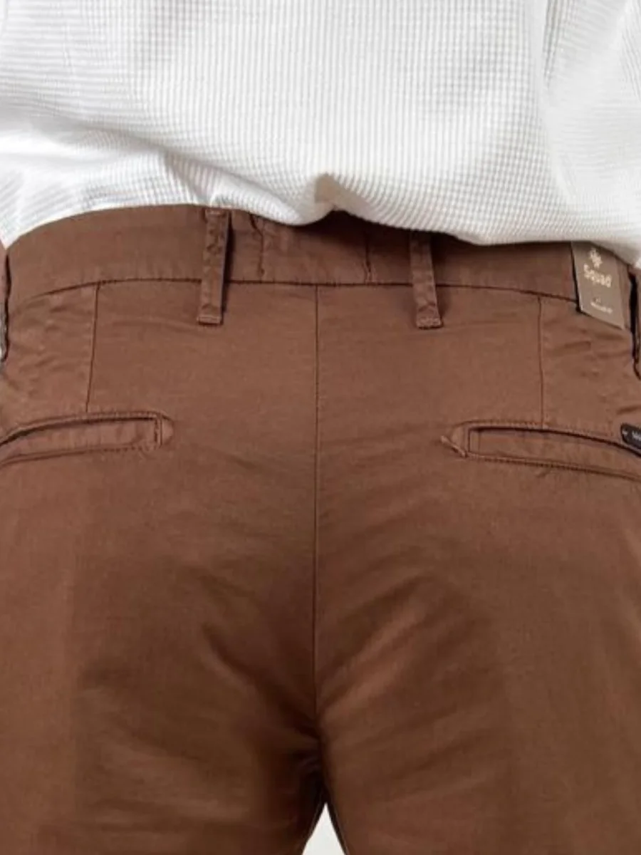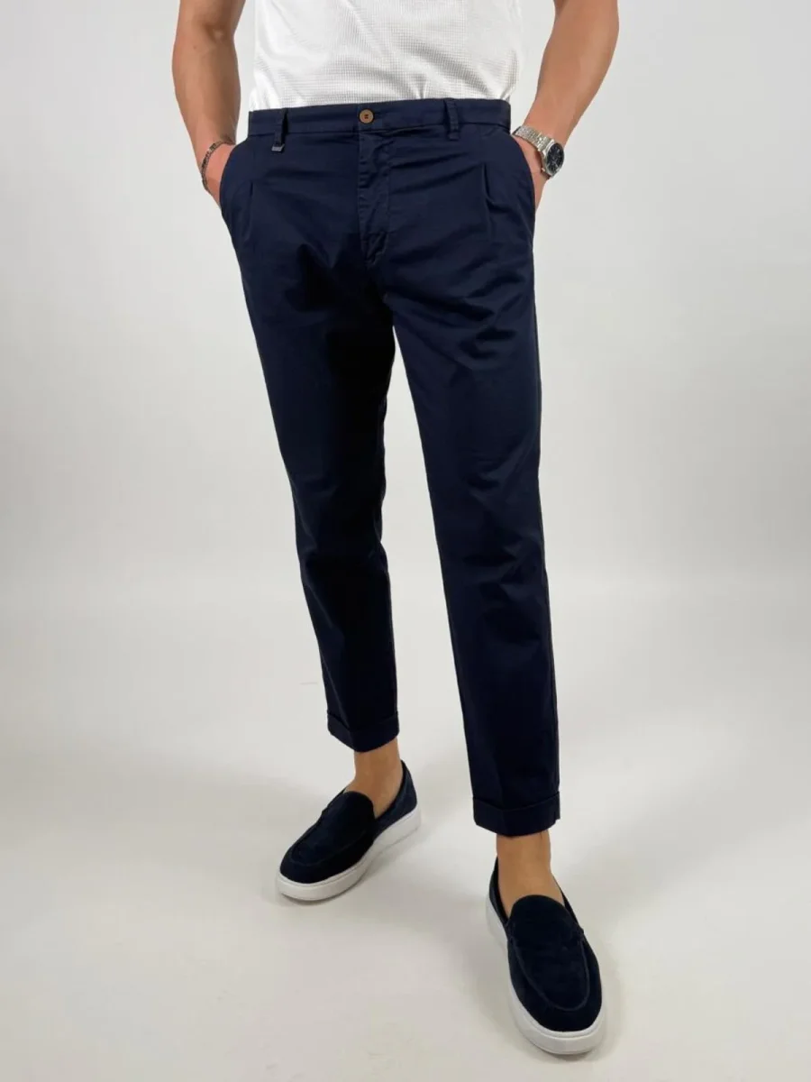 Pantalone Rio226001leggera micro gabardina stretch di cotone, modello chino, con chiusura zip nascosta, pinces, tasche america, taschino portamonete con bottone e gamba con risvolto
