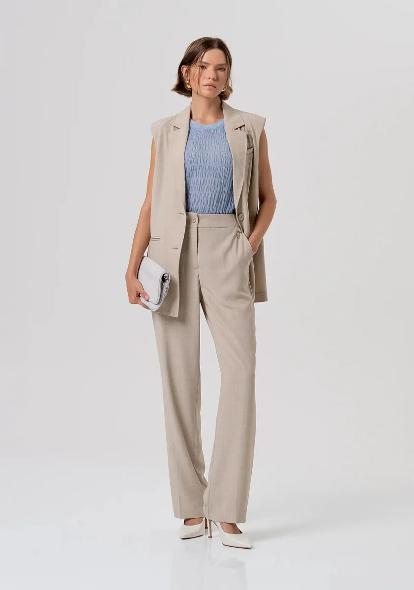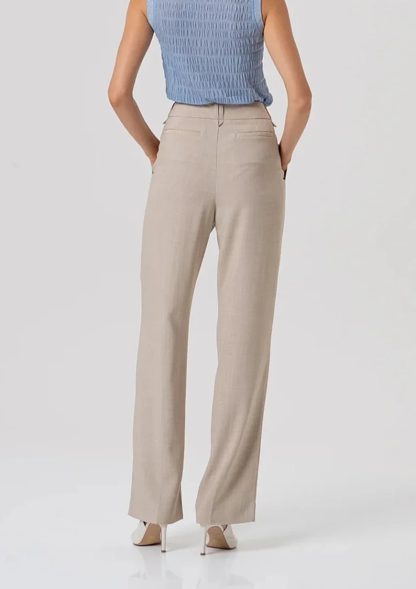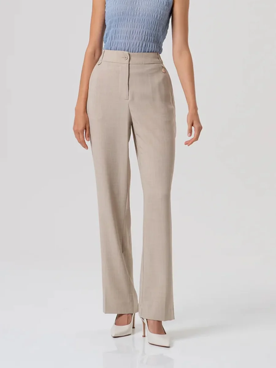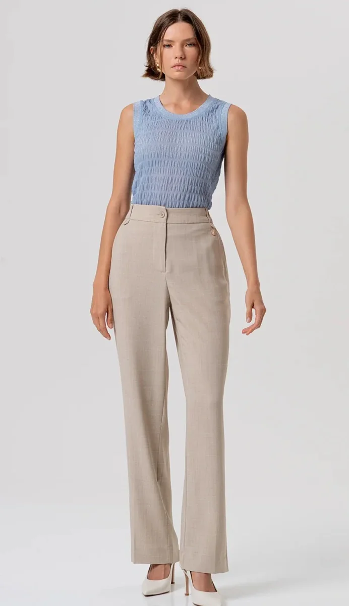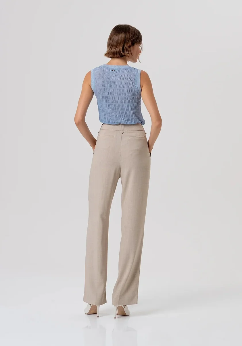 Pantalone regular modello chino, vita regolare, tasche alla francese sul davanti, tasche a filetto sul dietro, e con fondo dritto.