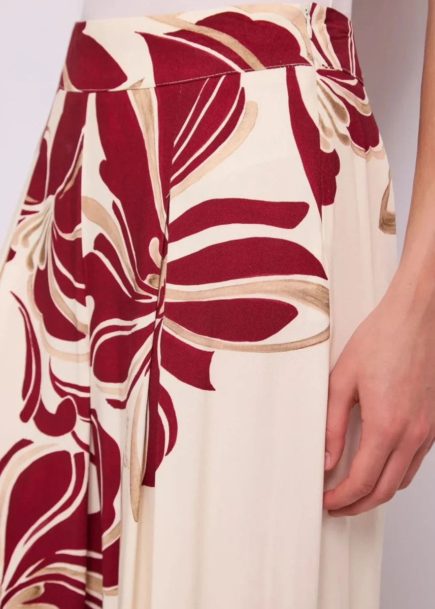 Scegli i pantaloni in twill con stampa floreale, pinces e zip invisibile sul fianco. Fluidi e leggeri per un look d’ispirazione boho-chic.